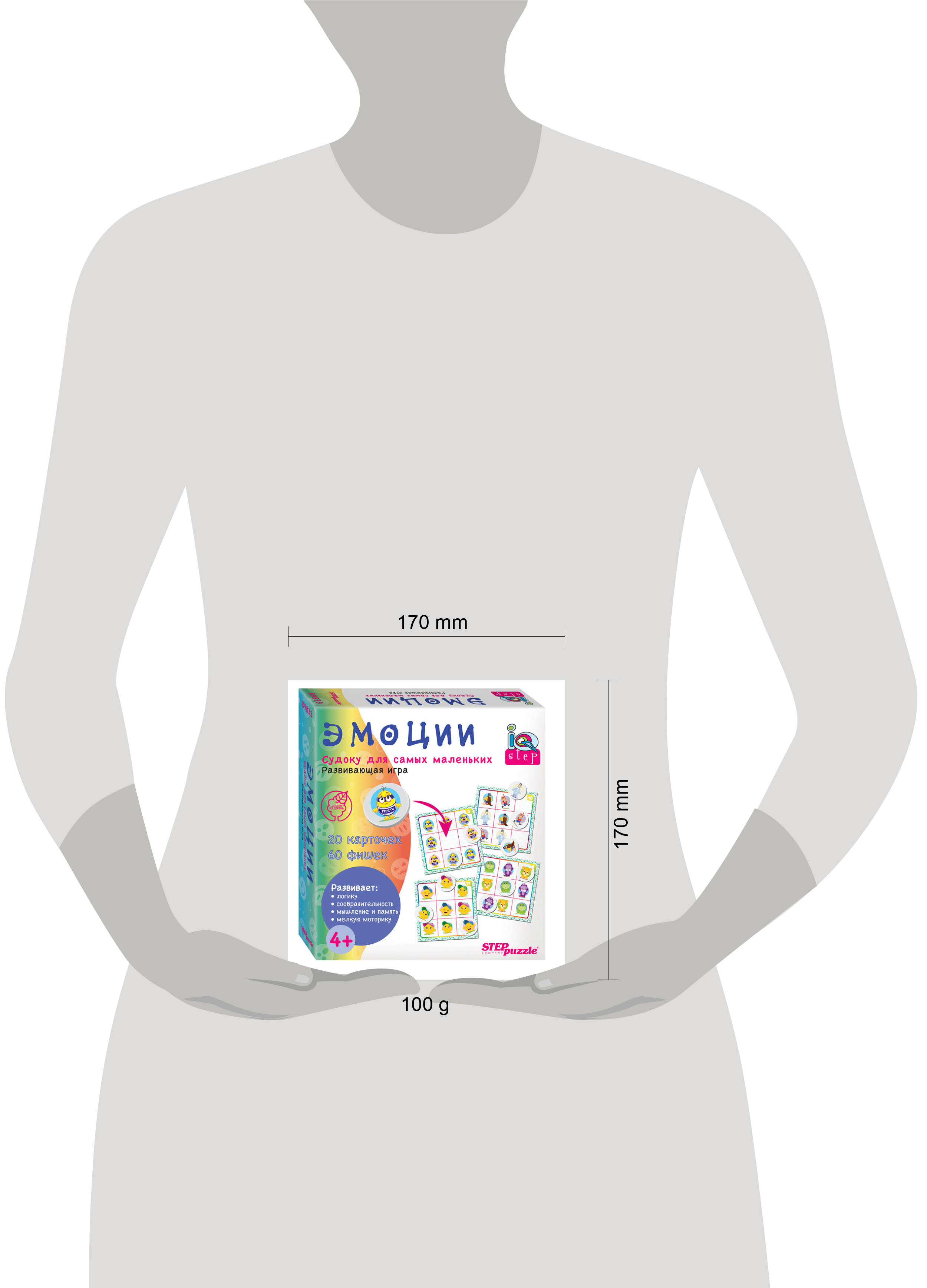 Игра "Эмоции" - это судоку с картинками для малышей. Ее правила совпадают с классическим судоку, но только вместо цифр тут используются фишки с картинками. Ребенку нужно посмотреть на карточку и заполнить пустые клетки - но сделать это нужно так, чтобы в каждой строчке и каждом столбце одно и то же изображение животного встречалось только один раз. Что полезного в игре? - развивает логику и внимание; - развивает логическое мышление и память; - развивает мелкую моторику; - выполнена из экологически чистого материала. - содержит опорные карточки с заданиями разной сложности. Состав игры: - карточки-основы - 20 шт. - фишки - 60 шт. Игра подходит для детей от 4 лет.| Издательство | Степ Пазл ЗАО |
