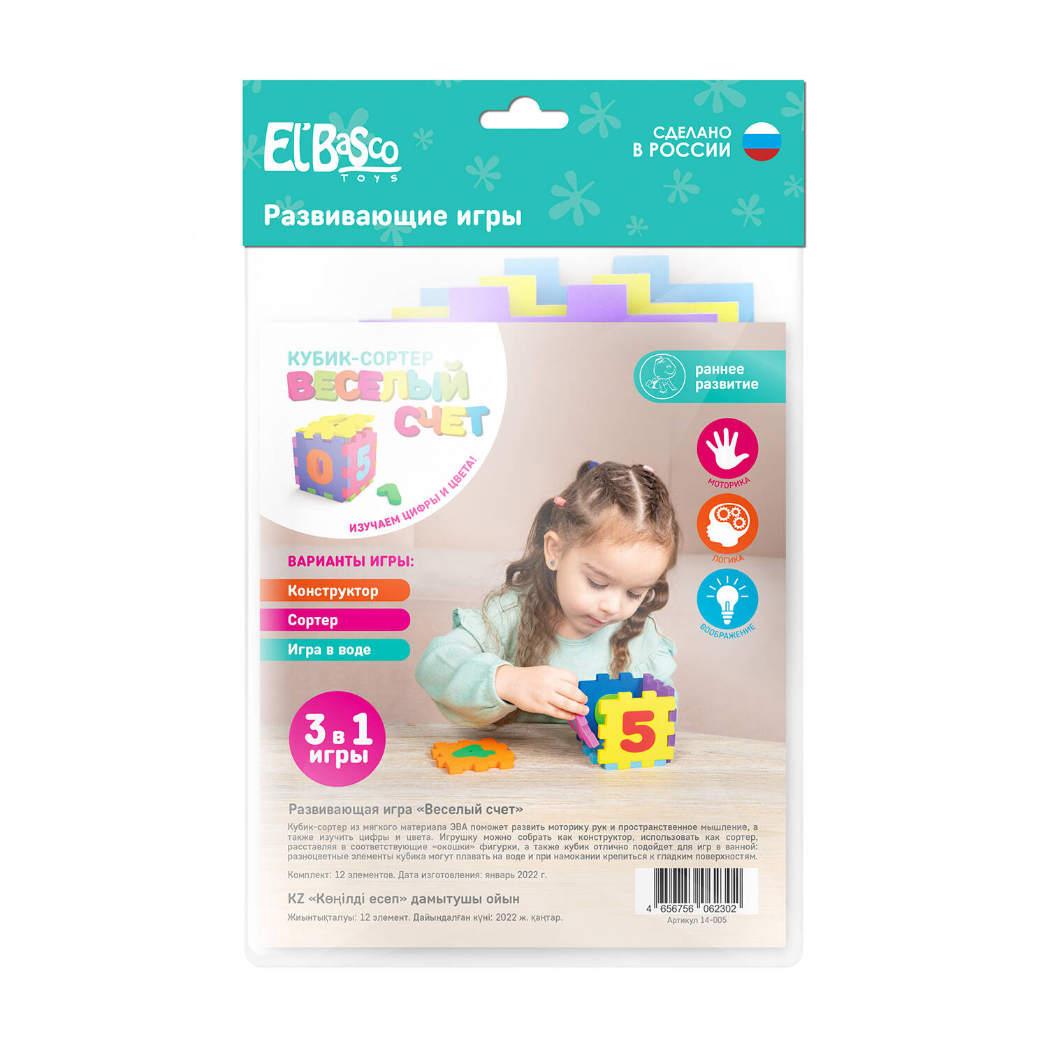 Мягкий кубик-сортер состоит из 6 граней с фигурными отверстиями, в которые малышу предлагается поместить подходящие по форме элементы. Кроме того, кубик можно собирать и разбирать целиком - детали легко соединяются между собой без дополнительных креплений и отлично держат форму. Толщина материала 8 мм.| Издательство | Я РАСТУ ТОЙЗ ООО |