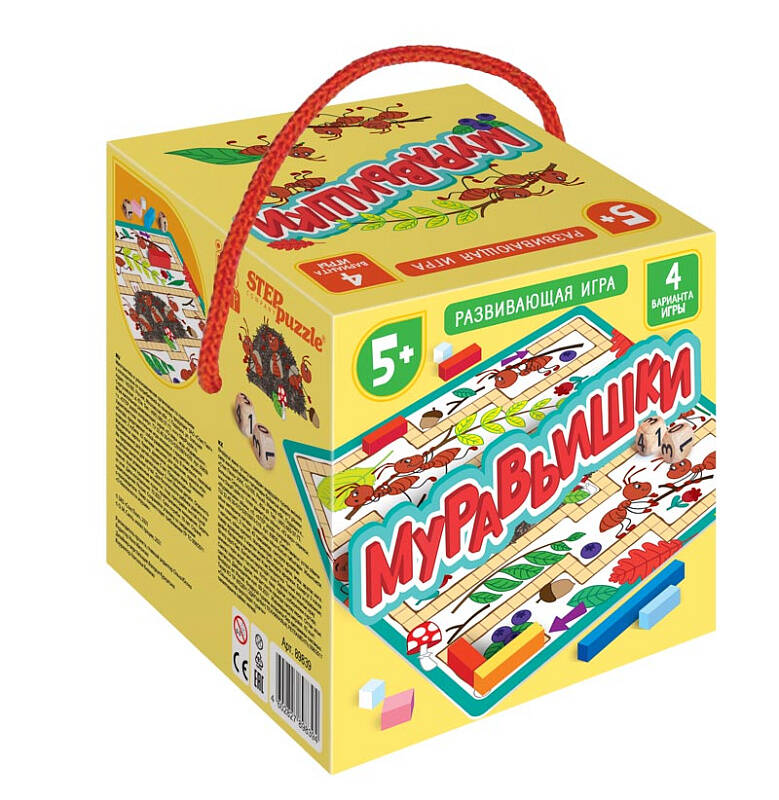 Развивающая игра "Муравьишки" способствует развитию памяти, внимания, пространственного мышления, а также учит ребенка логически рассуждать и просчитывать возможные действия соперника. В "Муравьишки" можно играть двумя способами. Цель первой игры - с помощью палочек добраться до муравейника, обогнав соперников. Второй - быстрее остальных избавиться от своих палочек. Стоит отметить, что в игре использованы палочки по методике Кюизенера, с которыми можно проводить дидактические игры. Что полезного в игре? учит ребенка логически рассуждать и просчитывать возможные действия соперника; помогает узнать о составе числа и проделать счетные операции; детали из дерева. Состав игры: двусторонний пазловый планшет кубики - 2 шт. 42 палочки (2 комплекта по 21 палочке, 10 цветов) мешочек для хранения правила игры Игра подходит для детей от 5 лет. Рекомендуемое количество участников: 2 человека. Порадуйте ребенка игрой "Муравьишки" - она полезная, интересная и весёлая.| Издательство | Степ Пазл ЗАО |