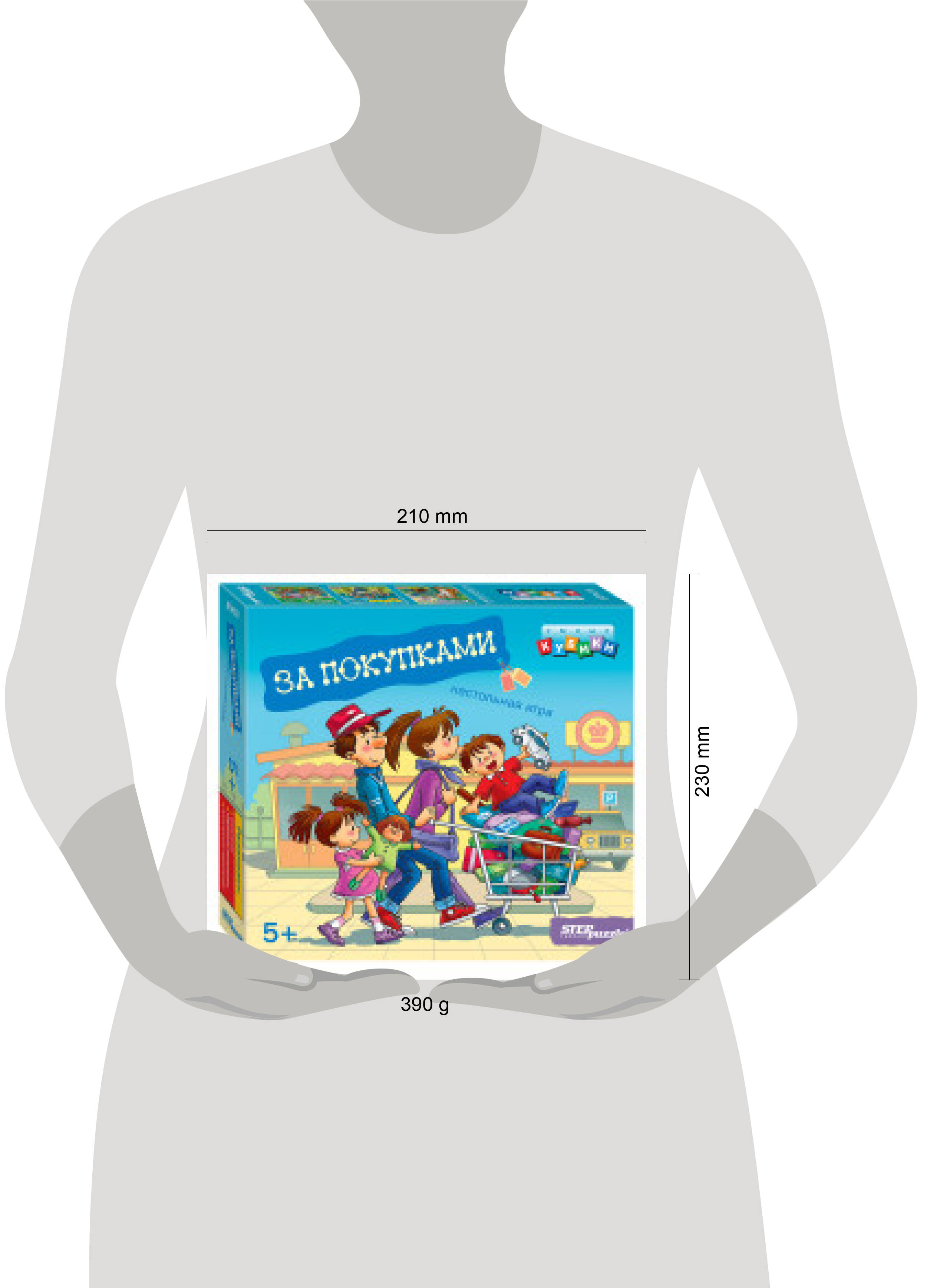 Настольная игра "За покупками" из серии "Умные кубики" способствует развитию у ребенка навыков логического мышления. Также игра развивает усидчивость, моторику, внимание и память. Чтобы в процессе игры не ошибиться, нужно быть очень аккуратным, терпеливым и внимательным. Занятия и игры с использованием "Умных кубиков" постепенно формируют у ребёнка все эти качества. С помощью этой игры ребёнок может сходить в цветочную лавку, в булочную или в магазин игрушек. Он посетит овощной рынок и магазин инструментов, а также купит продукты домой. Игра позволяет проявить фантазию - придумайте человека, который может использовать изображенный на кубике предмет. Как его зовут? Кто он по профессии? Если всё это ещё и по ролям разыграть, получится самый настоящий театр! Состав игры: - кубики - 6 шт.; - карточки двусторонние - 6 шт.; - карточки с животными - 36 шт.; - правила игры. Правила игры подробно описаны в инструкции. Суть игры: ребенку необходимо найти на карточке изображение, тень или контур товаров и сопоставить их с кубиками. Возраст игроков: игра будет интересна детям от 5 лет. Количество игроков: 2-4 игрока. Материал: пластмасса. Бонус: игра "Уши, лапы и хвосты" (36 карточек). Полная игра состоит из 144 карточек (36 различных животных). Эти карточки можно найти в играх "Буквы", "Животные", и "Цифры и формы", серии "Умные кубики". Цель игры - собрать из карточек целое изображение животного. Фактически, в игру "Уши, лапы и хвосты" можно играть сразу, но в одном наборе с кубиками представлены только 9 животных. Всего в четырех наборах 36 зверей. Таким образом, собрав карточки из всех игр, ребенок узнает гораздо больше животных и значительно пополнит свой словарный запас. В серии "Умные кубики" представлены: - Развивающая игра "Цифры и формы" - Развивающая игра "Буквы" - Развивающая игра "Животные"
