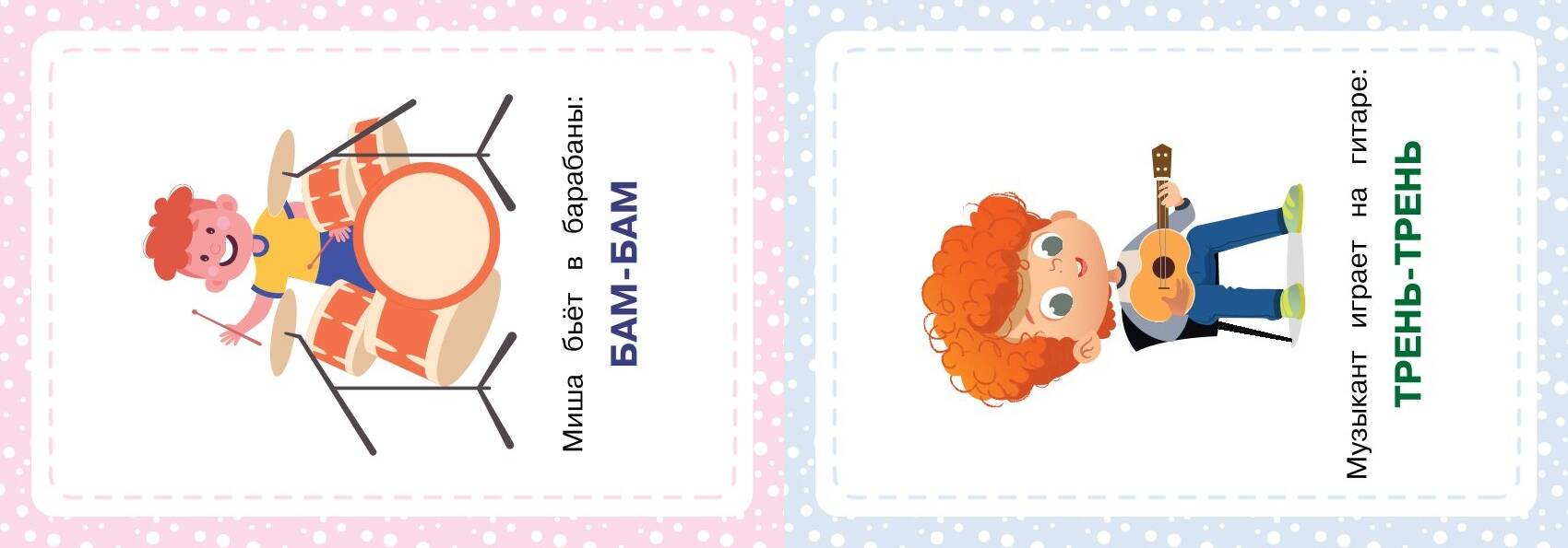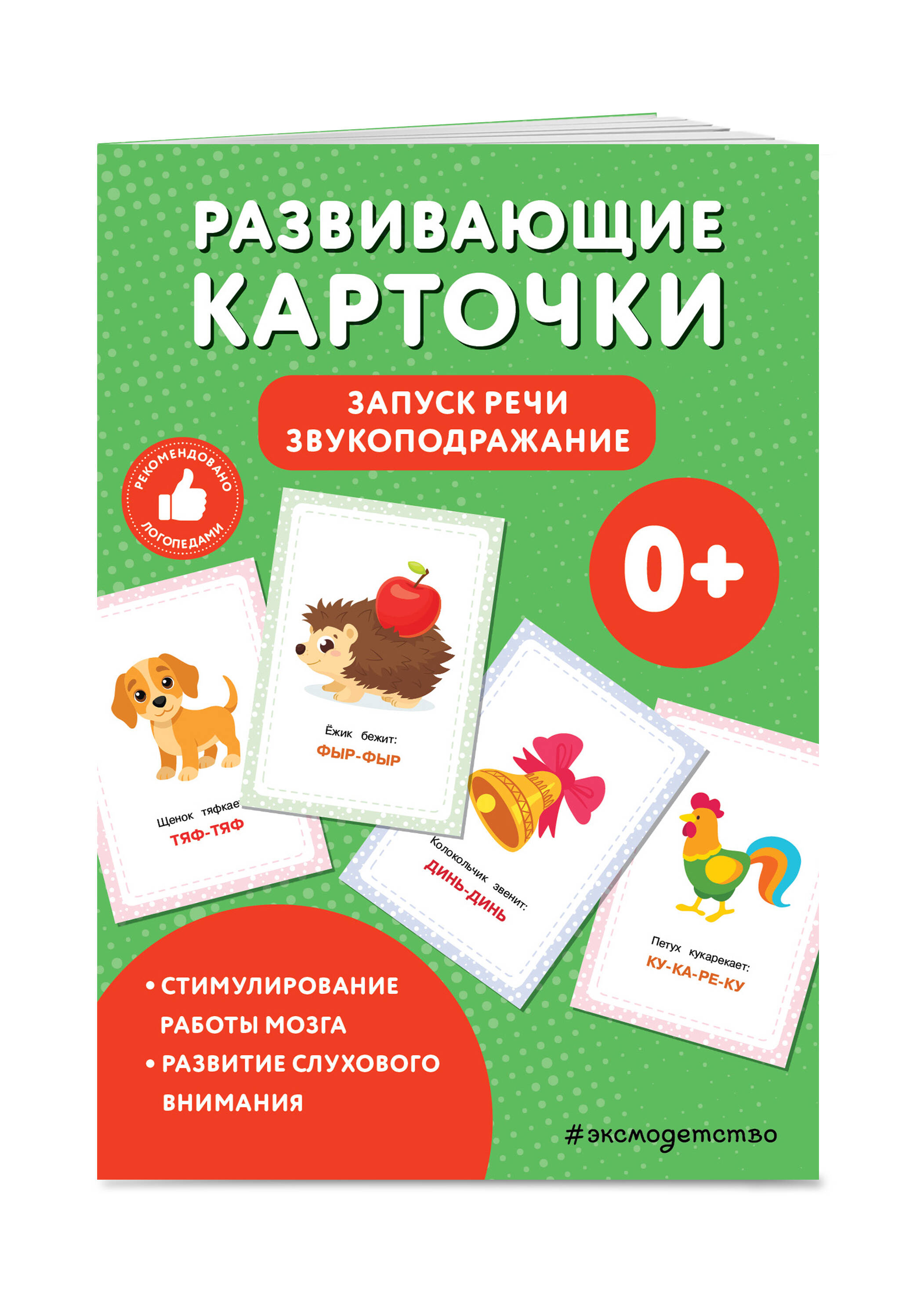 Развивающие карточки предназначены запуска речи малышей, начиная с 6-месячного возраста. В комплекте 34 плотные двусторонние карточки с имитацией звуков животных, транспорта, музыкальных инструментов, людей и природных явлений. Звукоподражания - это сочетания звуков, позволяющие малышу, который ещё не умеет говорить, понятным для него образом озвучить объекты окружающего мира. Повторение звукоподражаний развивает фонематический слух и артикуляционный аппарат ребёнка. Красочные иллюстрации на карточках заинтересуют малыша, и он захочет озвучить картинку. Помогите ему в этом. Каждая карточка снабжена фразой-подсказкой для взрослых. Произнесите звукоподражание насколько раз. Хорошо, если малыш будет видеть движения ваших губ, это поможет ему понять, как произносятся различные звуки речи. Играйте с ребёнком, пока он не начнёт повторять за вами. Изучив звукоподражания по карточкам, перенесите игру на игрушки и предметы обихода. Пусть ребёнок пытается их озвучить. Это будет самой лучшей тренировкой его речевого аппарата и поможет ему начать говорить слова и предложения раньше своих сверстников.| Издательство | ООО "Издательство "Эксмо" |