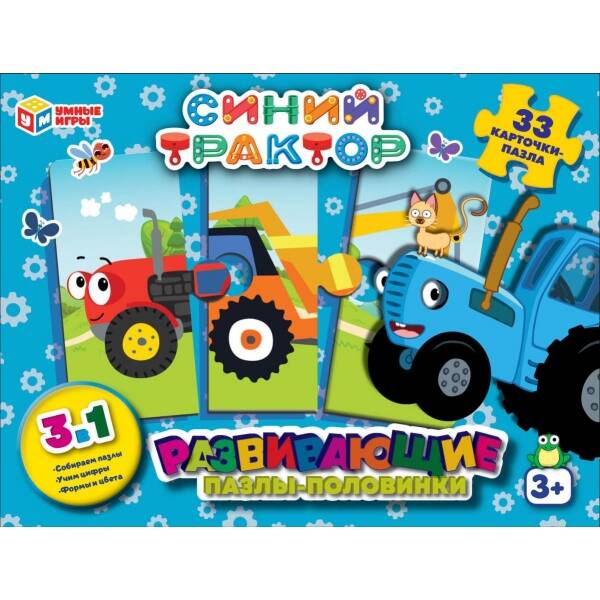 Аннотация: Развивающие пазлы-половинки "Синий Трактор". 3в1 155х115х30мм. Умные игры в кор.20шт