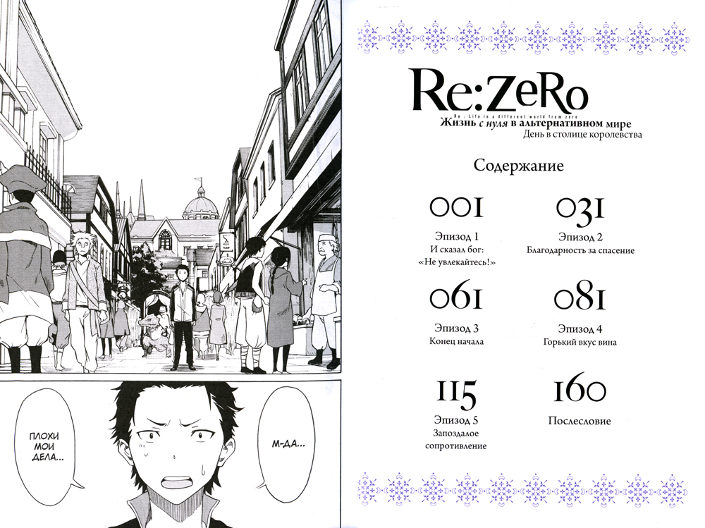 Возвращаясь домой из магазина, старшеклассник Субару Нацуки попадает в фэнтезийный мир. Юноша, знающий толк в видеоиграх, приходит к выводу, что его призвали в иную реальность. Субару ожидает встречи с призвавшим его персонажем, но на него нападают разбойники. На выручку юноше приходят загадочная сереброволосая красавица и дух в облике кота. В благодарность за спасение Субару предлагает девушке помочь в поисках украденной у неё вещи. Когда цель уже близка, герои вдруг становятся жертвами таинственного убийцы... после чего Субару приходит в чувство и обнаруживает себя на том же самом месте, где начались его приключения. Постепенно юноша понимает, что он наделён способностью «Посмертное возвращение». Субару, проживая раз за разом один и тот же день, пытается найти выход из временной петли и вернуть себе своё будущее.| Издательство | ИД Истари Комикс |