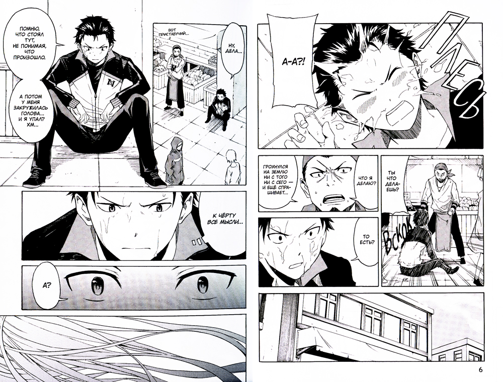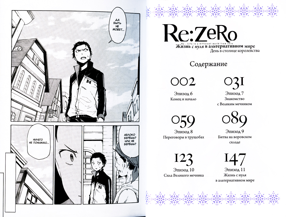 Возвращаясь домой из магазина, старшеклассник Субару Нацуки внезапно попадает в фэнтезийный мир. После того как его трижды настигает смерть, герой понимает, что наделён способностью «Посмертное возвращение», позволяющей отматывать время назад каждый раз, когда он умирает. Субару предстоит встретиться лицом к лицу с загадочным убийцей и спасти от смерти сереброволосую красавицу, погибшую вместе с ним в самый первый раз. Ведь ему так хочется снова увидеть её улыбку!.. Во втором томе герой прерывает череду смертей, чтобы очнуться в завтрашнем дне.| Издательство | ИД Истари Комикс |