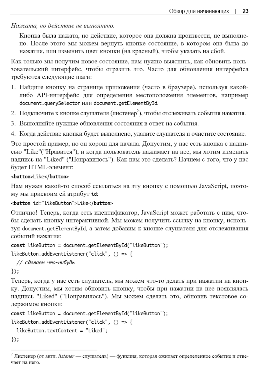 Рассматривается разработка веб-интерфейсов и веб-приложений с использованием React - популярной библиотеки JavaScript для создания пользовательских интерфейсов. Рассмотрены фундаментальные концепции React, такие как синтаксис JSX, виртуальный DOM, алгоритм согласования и передовые методы оптимизации. Благодаря простым и наглядным примерам, книга помогает понять работу React как на базовом, так и на продвинутом уровне, оптимизировать код и использовать различные механизмы React. Книга поможет овладеть навыками написания интуитивно понятного кода и максимально эффективно использовать все возможности React для создания современных веб-приложений.| Издательство | АЛИСТ |