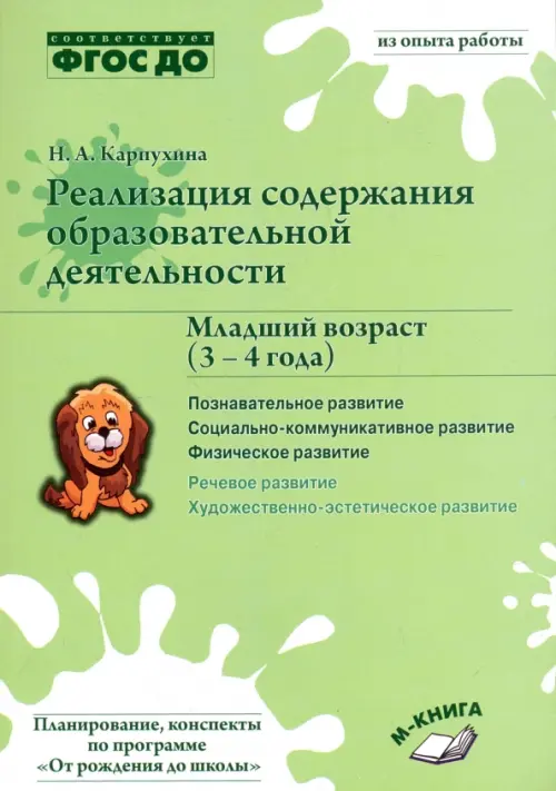 В данном пособии представлен учебный план на год по реализации пяти образовательных областей: познавательное развитие, речевое развитие, физическое развитие, социально-коммуникативное развитие, художественно-эстетическое развитие детей группы младшего возраста (3-4 года). Даны примерные варианты распределения содержания пяти образовательных областей в режиме месяца в соответствии с требованиями СанПин и ФГОС ДО. Предлагаются конспекты организованной образовательной деятельности, дидактические игры и упражнения для использования в работе с детьми для совместной и самостоятельной деятельности в режиме дня.