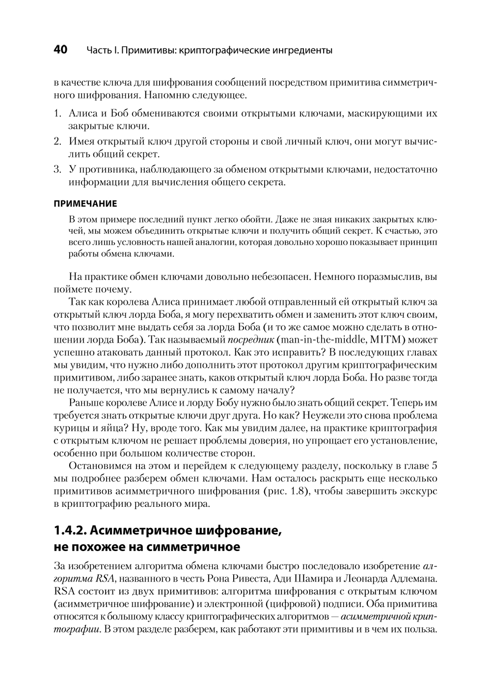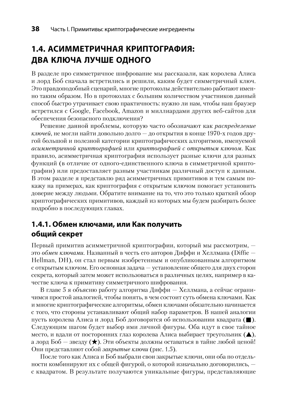 Криптография - это фундамент информационной безопасности. Чтобы быть на шаг впереди хакеров, атакующих ваши системы, необходимо разбираться в инструментах, структурах и протоколах, защищающих ваши сети и приложения. В книге просто и наглядно описываются аутентификация, шифрование, подписи, хранение секретов и другие криптографические понятия. Изучите приемы, которые используют разработчики, системные администраторы и специалисты по безопасности в своей повседневной работе. Вы не встретите ни сложных математических выкладок, ни умопомрачительного жаргона: современные криптографические методы рассматриваются с помощью понятных графиков и практических примеров. Познакомьтесь с хеш-функциями и подписями, криптографическими протоколами и безопасным обменом сообщениями, а также с передовыми достижениями, такими как постквантовая криптография и криптовалюты. Читать «Реальную криптографию» одно удовольствие и, возможно, она спасет, когда в следующий раз злоумышленники покусятся на ваши данные.| Издательство | Питер |