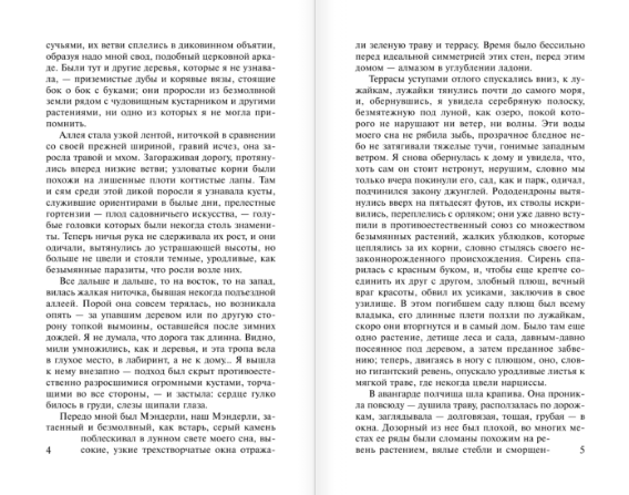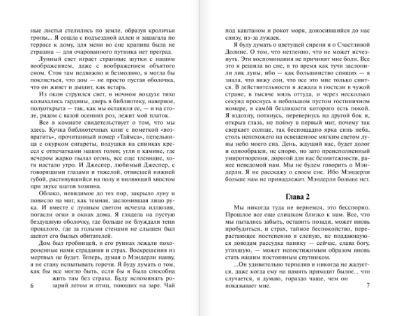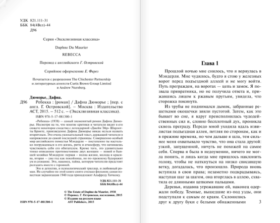 «Ребекка» (1938 г.) - самый знаменитый роман Дафны Дюморье. Несмотря на то, что многие критики и читатели видят в его сюжете некоторое сходство с легендарной «Джейн Эйр» Шарлотты Бронте, произведение Дафны Дюморье никак нельзя назвать вторичным. Это очень увлекательный текст, держащий читателя в напряжении до самой последней страницы. Совершенно особый мир английского поместья Мэндерли - постепенно ты настолько погружаешься в его жизнь, ритм и атмосферу, что начинаешь чувствовать себя его обитателем. Кроме того, это удивительно тонко описанное противостояние двух женщин - новой и бывшей хозяйки Мэндерли: первая - полна жизни, молода и красива, вторая - уже год как покойница, но по-прежнему будоражит ум и сознание. Это, наконец, тайна, которую читателю предстоит разгадать вместе с героиней.