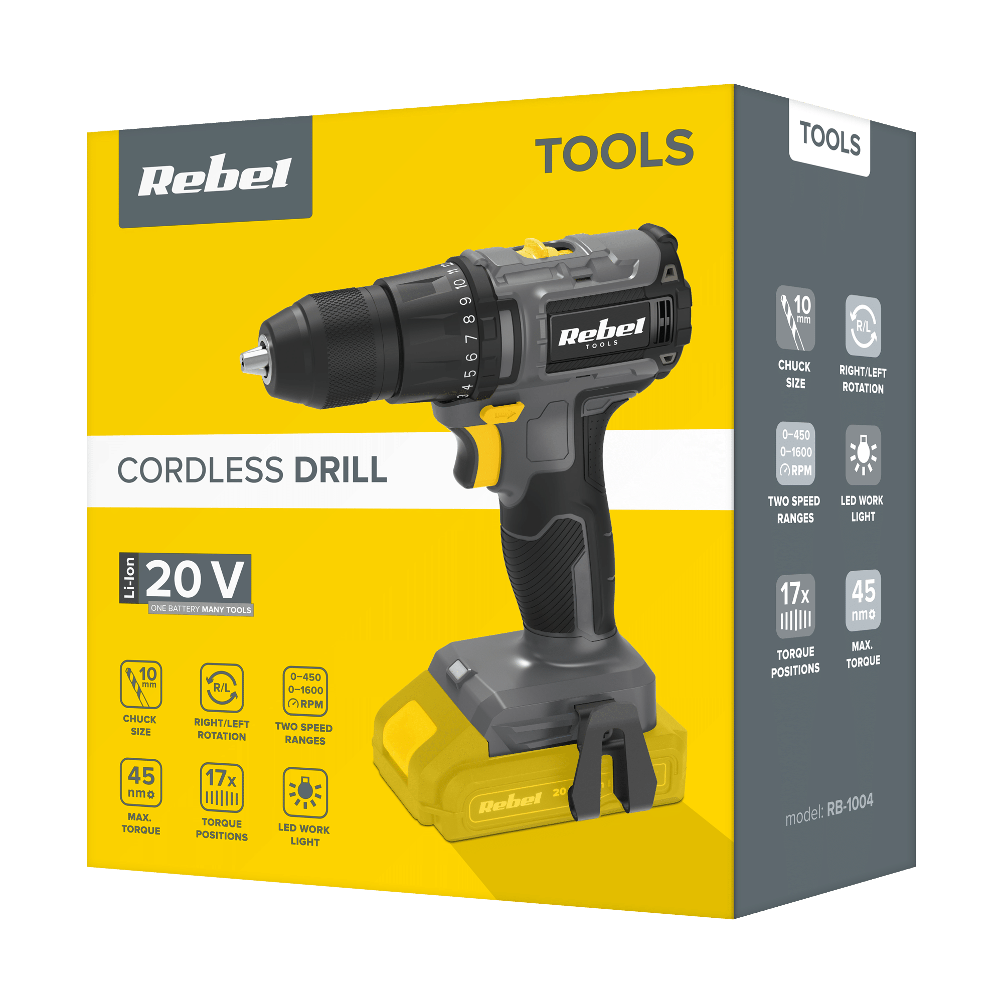 Rebel RB-1004 Аккумуляторный шуруповёрт 20V / 45Nm (без АКБ, без зарядника)