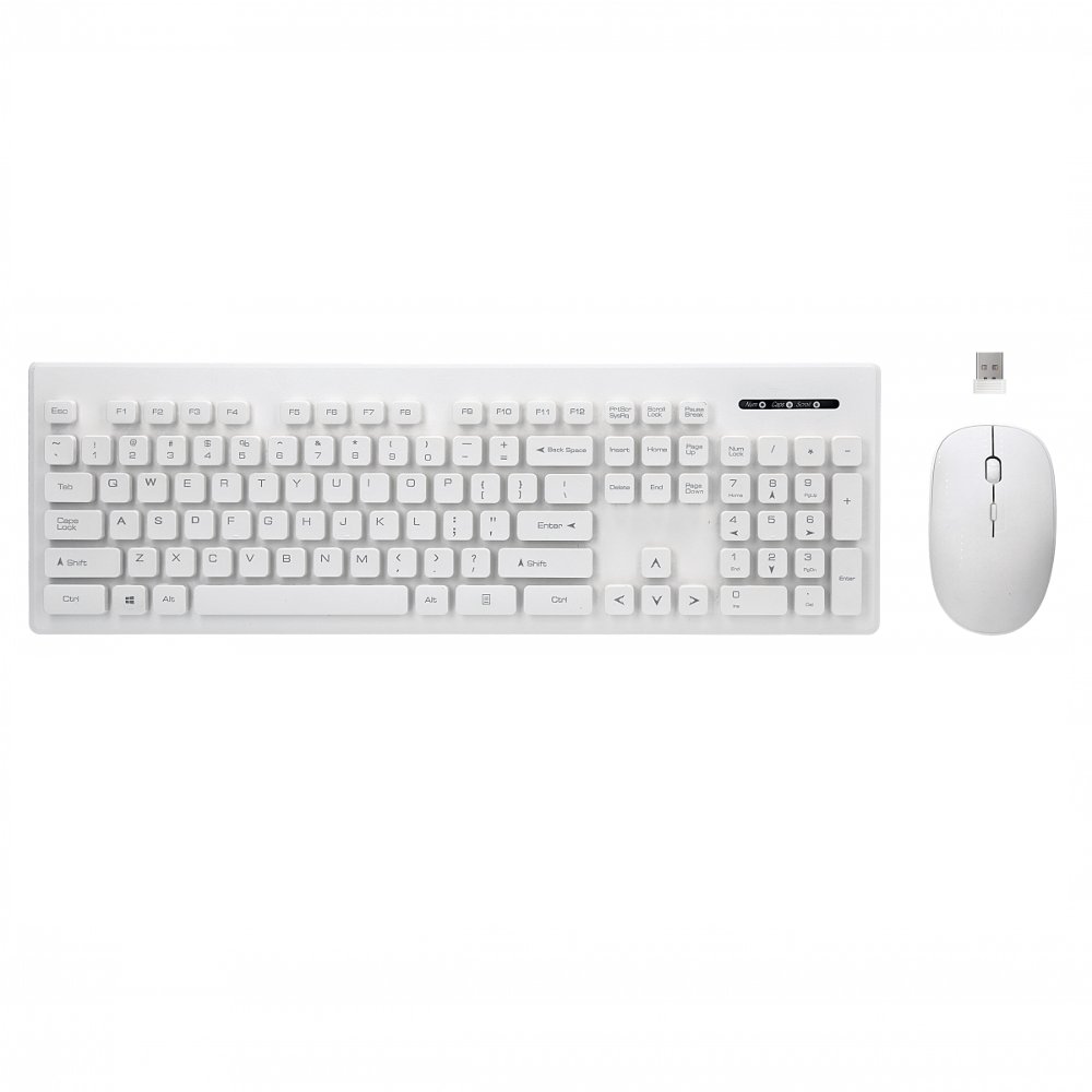 Беспроводная технология 2,4 ГГц Дальность действия приемника Nano USB 10 м Комплект работает с Android, Windows, iOS, Linux и smart TV Клавиатура: Грибовидная система, 104 клавиши Расположение клавиш QWERTY Компактный размер, питание от 2xAAA Мышь: Уникальный дизайн, оптический сенсор, 4 кнопки и разрешение 800/1200/1600 точек на дюйм, питание от 2xAAA