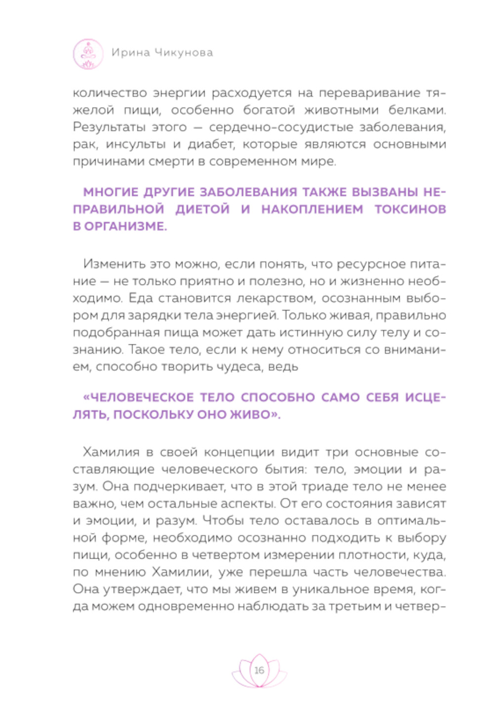 «Рецепты для ресурсной, качественной и здоровой жизни. Цивилизация Хамилия» - уникальная и совершенно особенная книга. Ирина Чикунова - ченнелер и проводник энергий мирового уровня. Она точно знает, что быть здоровой, гармонично развитой личностью абсолютно реально. В своей новой книге Ирина транслирует переданные Хамилией советы и рецепты, как полностью изменить свое отношение к еде, режиму питания, но главное - к самому смыслу своей жизни. Не просто обновить ее с помощью правильных продуктов, их сочетаний, но сознательно повысить качество своего существования в самой основе. Трансформируя себя, вы трансформируете свою энергию, свои вибрации и выходите на совершенно новый уровень - важная тема книги, в которой Хамилия раскрывает Систему ресурсных программ питания, предлагая новые инструменты, помогающие вам в работе над собой.| Издательство | Эксмо |