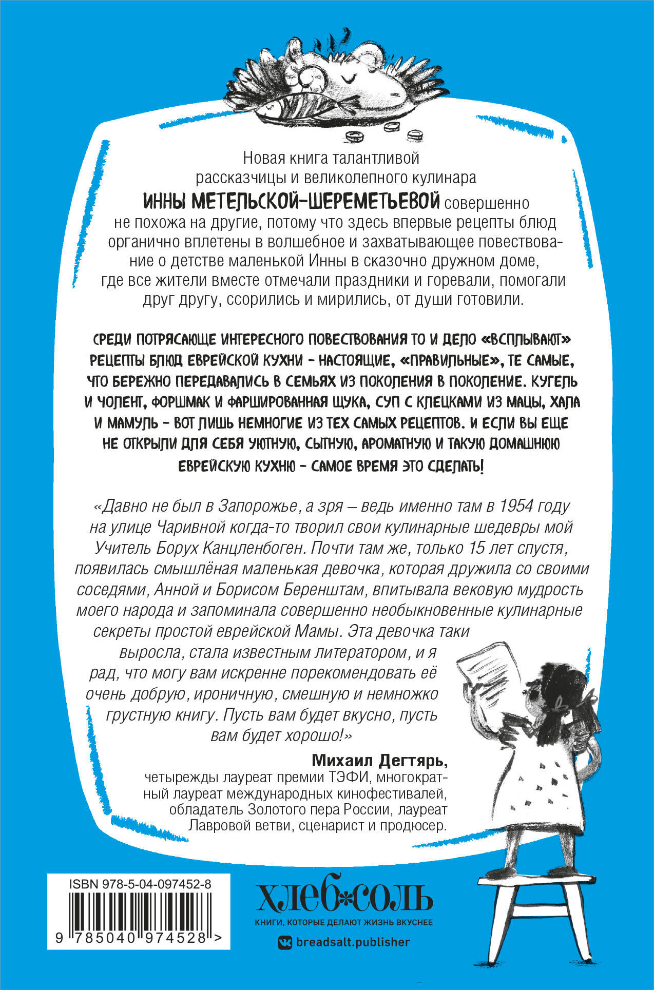 Перед вами новая книга талантливой рассказчицы и великолепного кулинара - Инны Метельской-Шереметьевой. Она совершенно не похожа на другие, потому что здесь впервые рецепты блюд - не главные, они лишь органично вплетены в волшебное и захватывающее повествование о детстве маленькой Инны в сказочно дружном Доме, где все жители вместе отмечали праздники и горевали, помогали друг другу, ссорились и мирились, от души готовили, а еще делились с некоторыми очень любопытными девочками своими фирменными, «секретными» рецептами. Эта книга посвящается поколению детей 60-х, 70-х и 80-х годов прошлого века. Каждый из того поколения обязательно испытает щемящее чувство ностальгии, когда окунется в яркий и очень искренний мир рассказов Инны Метельской-Шереметьевой, где так сочно, живо, с бездной юмора и будоражащими воображение деталями воссоздается неповторимая атмосфера, которую он помнит по собственному детству. Ну, а поклонники кулинарного творчества автора тоже не останутся разочарованными. Ведь среди потрясающе интересного повествования то и дело «всплывают» рецепты блюд еврейской кухни - настоящие, «правильные», те самые, что бережно передавались в семьях из поколения в поколение, а потом дошли и до маленькой Инны, которая оказалась отличной ученицей, сохранила их и пронесла через всю свою жизнь, чтобы, в конце концов, поделиться со своими читателями. Кугель и чолент, форшмак и фаршированная щука, суп с клецками из мацы, хала и мамуль - вот лишь немногие из тех самых рецептов. И если вы еще не открыли для себя уютную, сытную, ароматную и такую домашнюю еврейскую кухню - самое время это сделать. Инна Метельская-Шереметьева поможет.| Издательство | ООО "Издательство "Эксмо" |