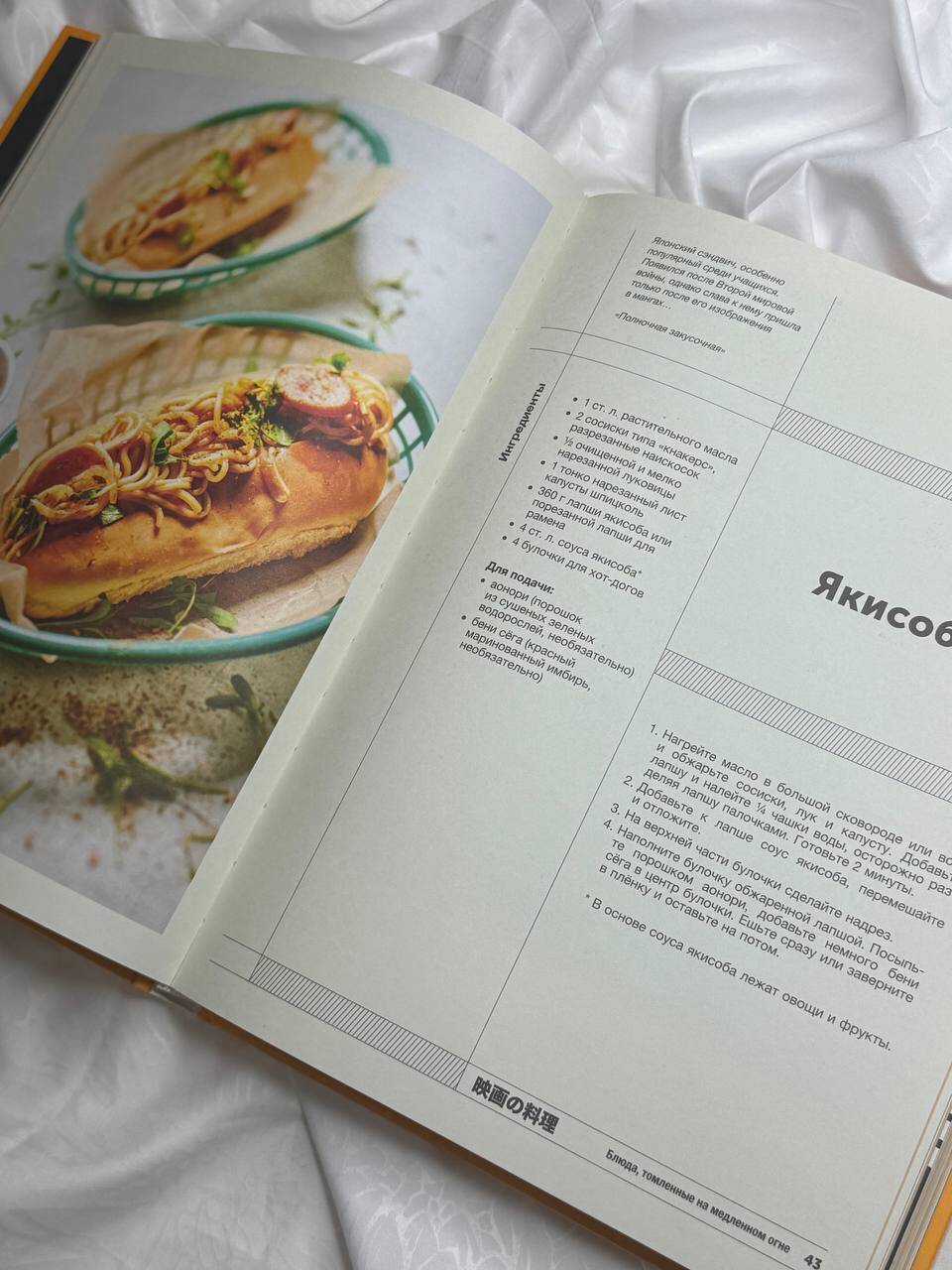 Посмотрите на мир японской гастрономии через призму любимых фильмов и аниме! Внутри вас ждут тщательно отобранные и простые в приготовлении рецепты, подходящие как для начинающих кулинаров, так и для опытных гурманов. Каждое блюдо сопровождается рассказом о фильме или сериале, который стал источником вдохновения: от бессмертной классики вроде "Токийской повести" Ясудзиро Одзу и "Жить" Акиры Куросавы до современных сериалов "Самурай-гурман" и "Что ты ел вчера?" Благодаря этой увлекательной книге читатель сможет попробовать паровые булочки из "Унесенных призраками" и японский ризотто из "Принцессы Мононке" Хаяо Миядзаки, холодный рамен с томатами и огурцами из "Сада изящных слов" Макото Синкая, японский омлет тамагояки из "Полночной закусочной" Дзёдзи Мацуоки, а также японские сладости вроде моти и дораяки. Для удобства использования рецепты поделены на разделы: блюда в кляре и на пару, рыбные, мясные и овощные блюда, а также десерты и чай.