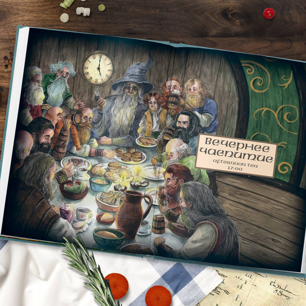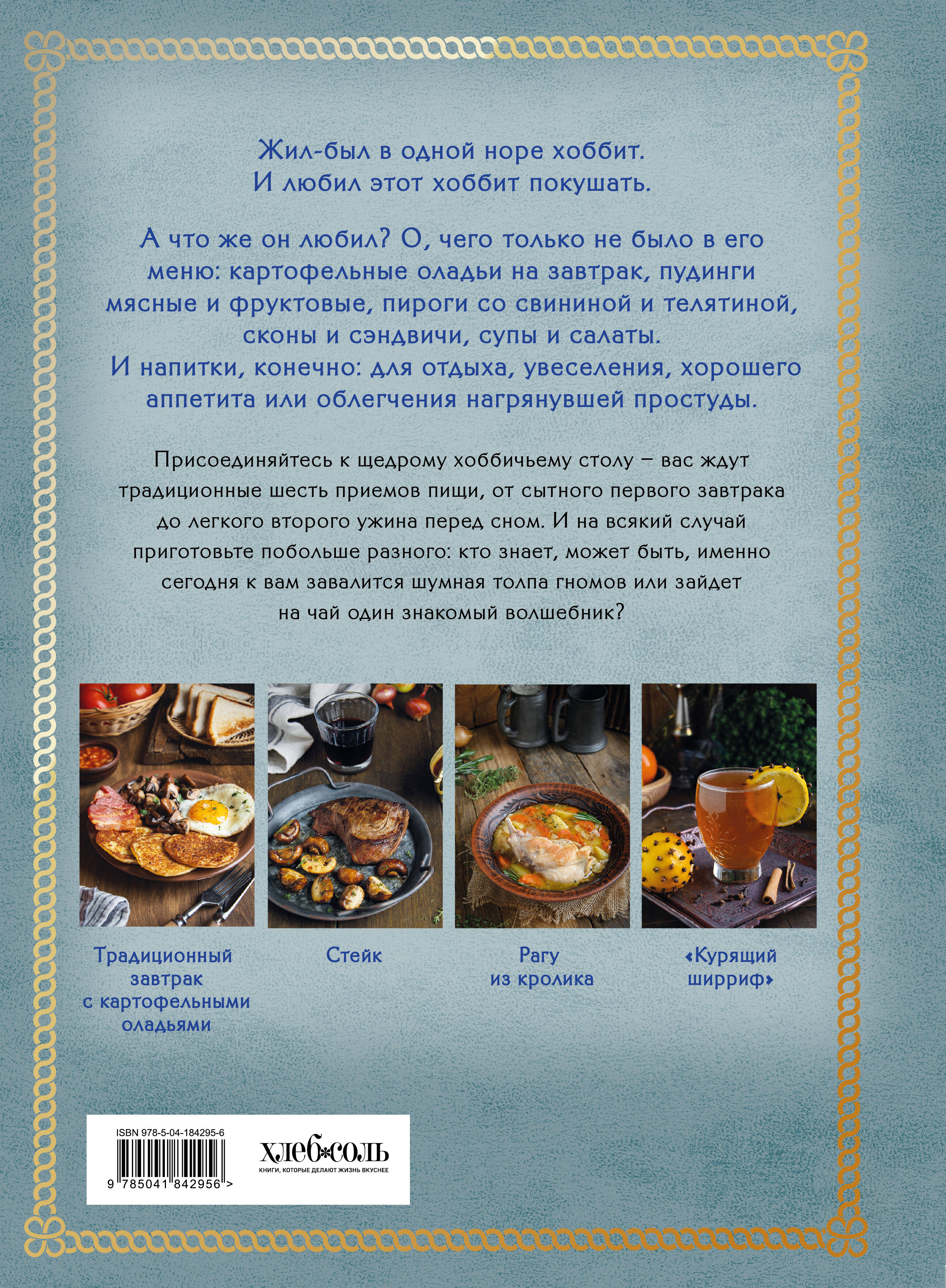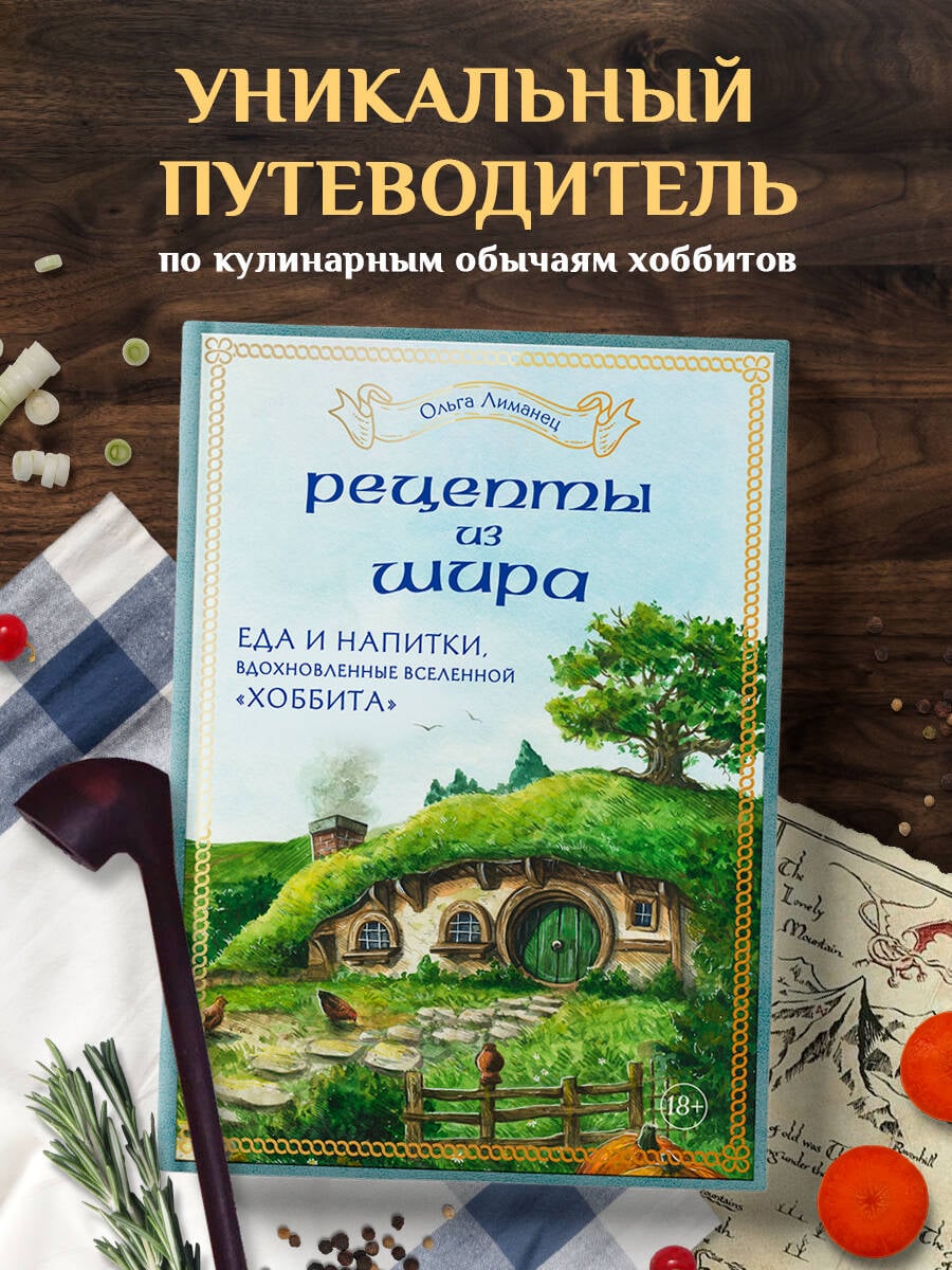 Что мы знаем о хоббитах? Что они живут в уютных норах, весьма рачительны и не любят долгих путешествий (кто тогда будет вести хозяйство?). Еще мы знаем, что хоббиты гостеприимны, любят повеселиться и, конечно, покушать! А что же хоббиты едят? О, меню их достаточно обширно: сытные рагу и супы, пудинги и кексы, печенья и каши и, конечно, напитки, крепкие и не очень. Вместе с книгой Ольги Лиманец, автора бестселлера «Ведьмак. Неофициальная кулинарная книга», перенеситесь в Шир и проведите день, как настоящий хоббит! Вас ждут 40 рецептов, разбитых на семь приемов пищи, а также несколько знаковых напитков, которые помогут разжечь аппетит, уберечься от признаков простуды или просто расслабиться вечерком перед камином. - На первый завтрак попробуйте картофельные оладьи или тыквенную кашу; - на второй завтрак перекусите тарталеткой с джемом или запеченным яблоком; - устройте утреннее чаепитие с печеньем или медовым кексом; - на обед приготовьте походное рагу из кролика или сытные колбаски; - вечером выпейте чаю с сэндвичами или сконом; - неторопливо поужинайте добрым стейком или традиционной рыбой с картошкой; - перед сном перекусите порцией морковного супа или грибного салата. Кажется, у вас уже урчит в животе, а из окошка норы струится ароматный пар. Стучитесь скорее в круглую дверь!