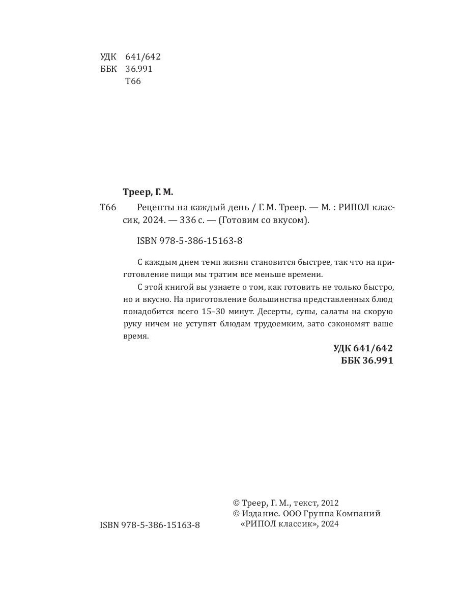 С каждым днем темп жизни становится быстрее, так что на приготовление пищи мы тратим все меньше времени. С этой книгой вы узнаете о том, как готовить не только быстро, но и вкусно. На приготовление большинства представленных блюд понадобится всего 15-30 минут. Десерты, супы, салаты на скорую руку ничем не уступят блюдам трудоемким, зато сэкономят ваше время.| Издательство | Рипол Классик |