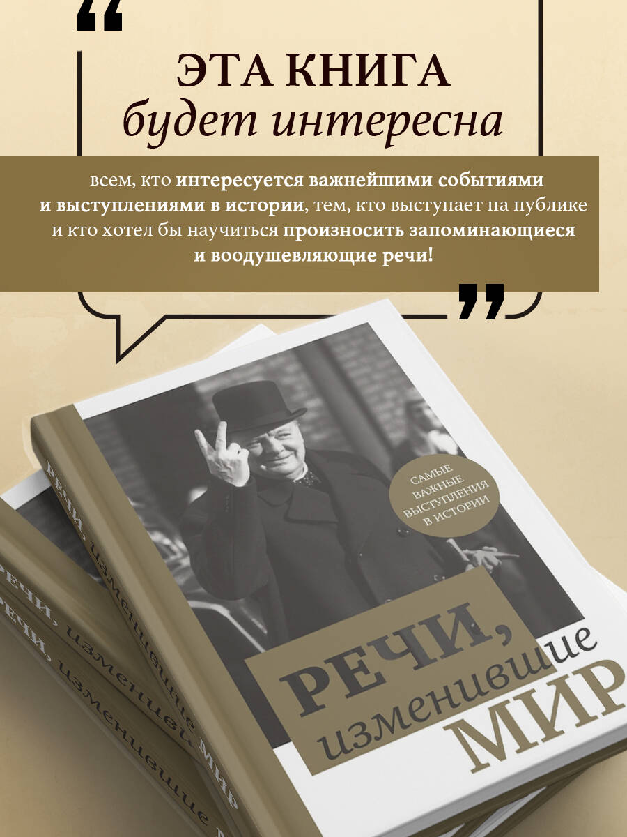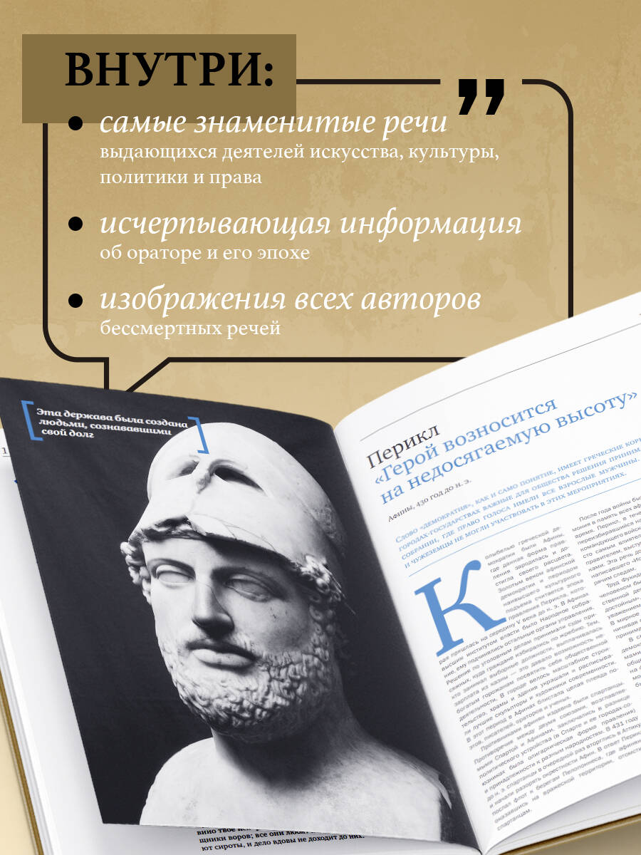О чем книга В этой книге собраны самые знаменитые речи, произнесенные выдающимися деятелями искусства, культуры, политики и права. Гениальные ученые и полководцы, бизнесмены и революционеры, художники и политики - все они выступили в роли великих ораторов и в свое время произнесли слова, которые до сих пор звучат сквозь века. Это подарочное издание представляет бессмертные слова Сократа, Достоевского, Черчилля, Гагарина и многих других, включая наших современников, например, Барака Обамы и Ангелы Меркель. Эти люди меняли мир своими выступлениями, создавали новые страны, религии, целые философские школы. Книга выходит в двух оформлениях. «Фишки» книги • Более пятидесяти важнейших выступлений в истории человечества. • Каждая речь сопровождается исчерпывающей информацией об ораторе и эпохе. • Изображения всех авторов бессмертных речей. Для кого эта книга Эта книга будет интересна всем, кто неравнодушен к истории развития человечества, всем, чья жизнь связана с выступлениями на публике, всем, кто хотел бы научиться произносить запоминающиеся и воодушевляющие речи! Подарок солидным партнерам по бизнесу и руководителям всех уровней.