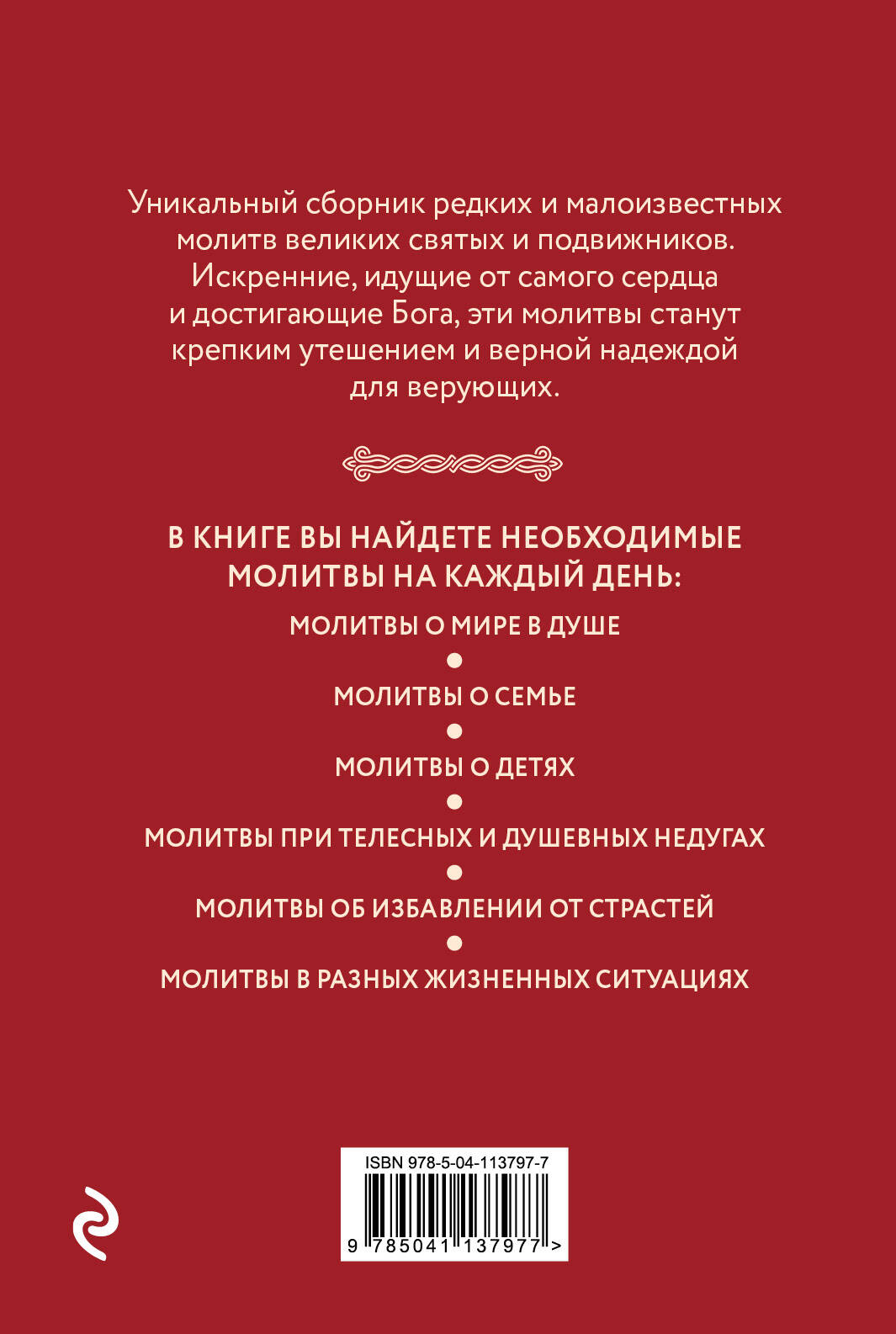Уникальный сборник редких и малоизвестных молитв великих святых и подвижников. Искренние, идущие от самого сердца и достигающие Бога, эти молитвы станут крепким утешением и верной надеждой для верующих.| Издательство | ООО "Издательство "Эксмо" |
