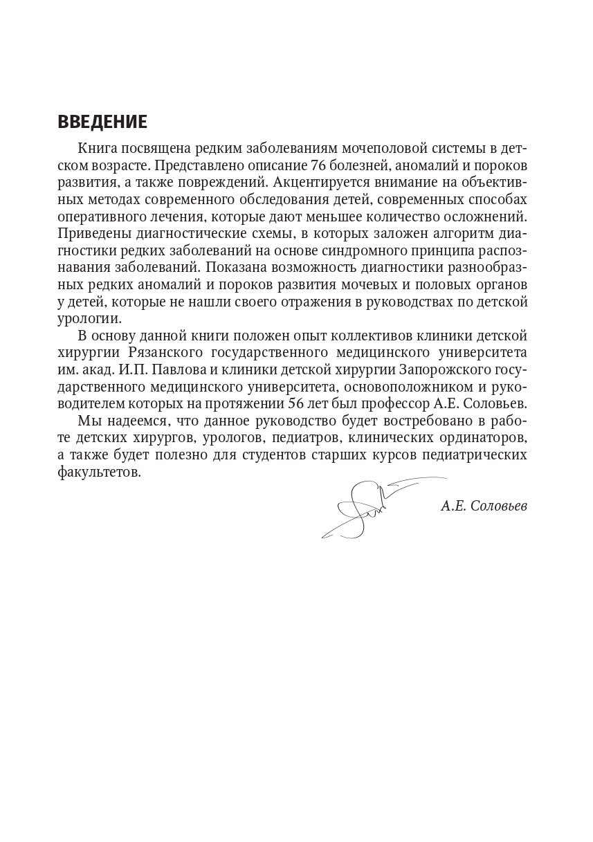 На основе большого опыта работы в области детской хирургии и урологии, широкого изучения отечественной и зарубежной литературы в книге подробно изложены редкие варианты аномалий и пороков развития мочеполовой системы у детей. Сделан акцент на объективных методах современного обследования детей, способах хирургического лечения, которые дают меньшее количество осложнений. Приведены диагностические схемы, в которых заложен алгоритм диагностики редких заболеваний на основе синдромного принципа распознавания заболеваний. Издание предназначено детским хирургам, урологам, педиатрам, клиническим ординаторам, а также студентам старших курсов педиатрических факультетов медицинских вузов.