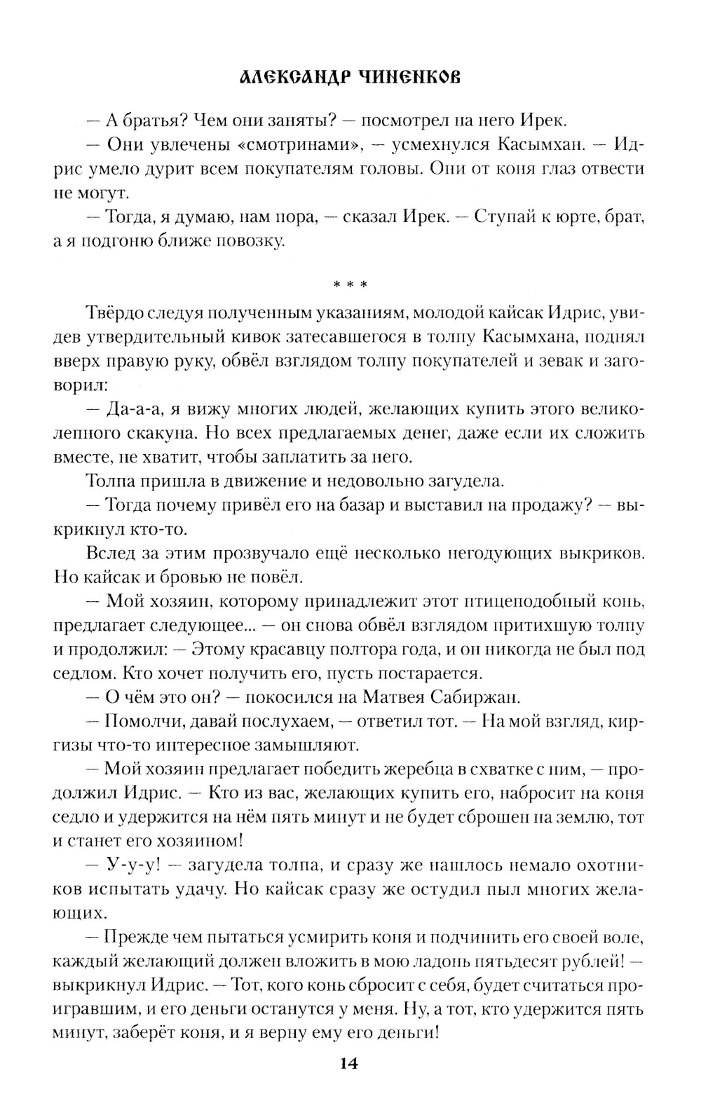 Конец XIX века. На широких просторах великой степи столкнулись интересы оренбургских казаков и киргиз-кайсаков. Бий кайсацкого рода, вольнолюбивый и жестокий Ирек, разоряет казачьи села, обрекая на гибель свое храброе племя. В желтинской семье Чернобровиных отец соперничает с сыном в смелости и удали, а несчастья дочери и матери проходят красной нитью через их судьбы... Все переплелось в романе - любовь и страдания, хитрость и жестокость. Но сила казацкая в единстве! А потому построены новые избы, звонко сыграна свадьба молодых и сходит на нет противостояние сторон, живущих по разным берегам одной реки.| Издательство | Вече |