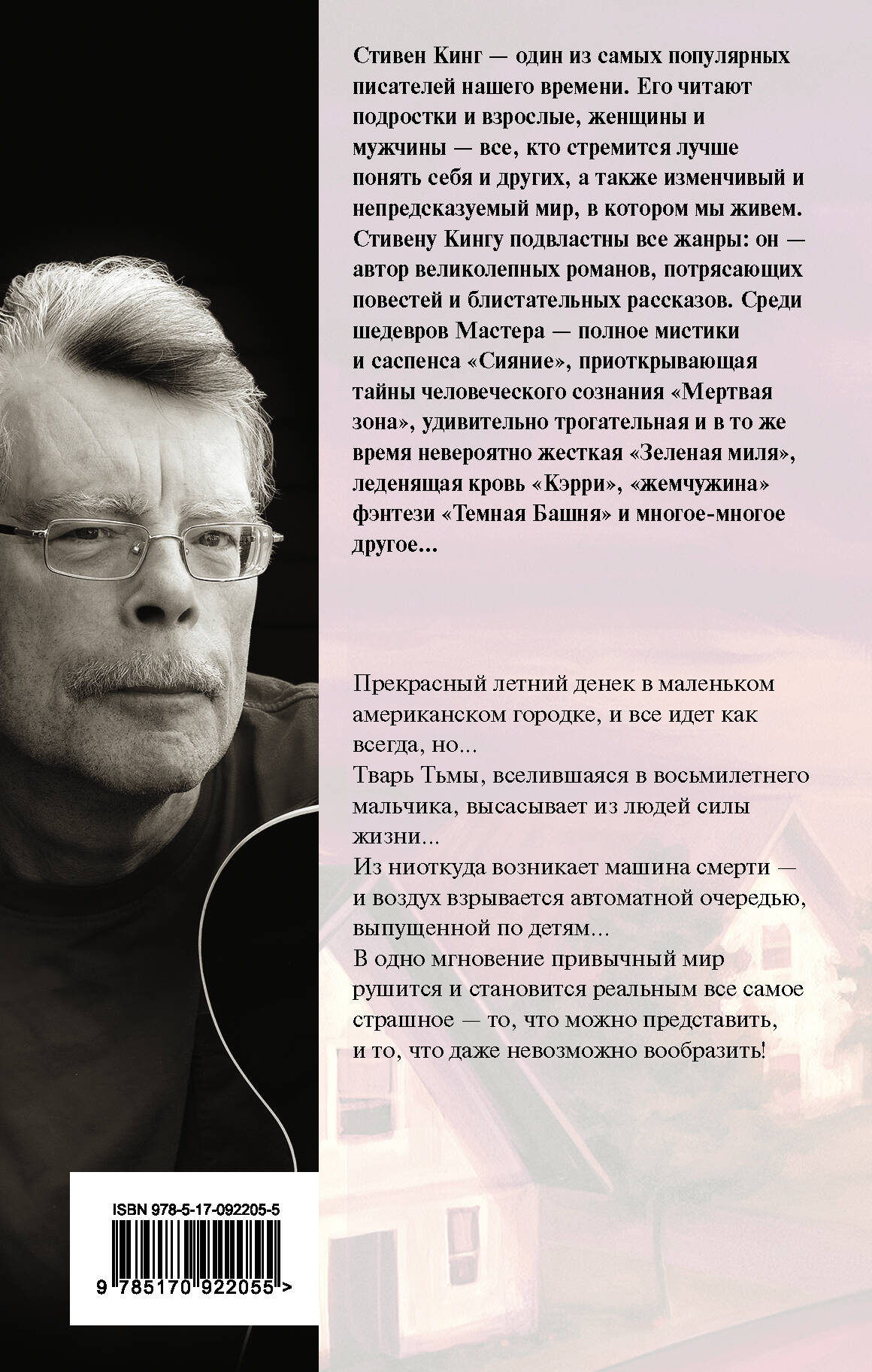 Прекрасный летний денек в маленьком американском городке, и все идет как всегда, но… Тварь Тьмы, вселившаяся в восьмилетнего мальчика, высасывает из людей силы жизни… Из ниоткуда возникает машина смерти - и воздух взрывается автоматной очередью, выпущенной по детям… В одно мгновение привычный мир рушится и становится реальным все самое страшное - то, что можно представить, и то, что даже невозможно вообразить!| Издательство | ИЗДАТЕЛЬСТВО "АСТ" |