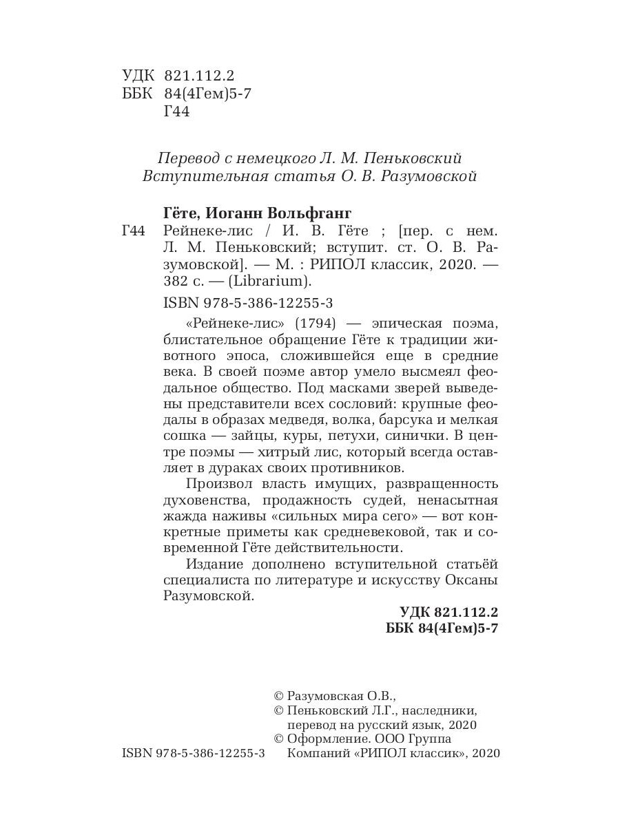 | Автор/составитель | Гете Иоганн Вольфганг |