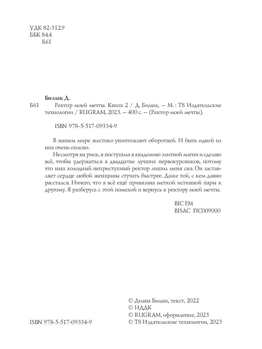 В нашем мире жестоко уничтожают оборотней. И быть одной из них очень опасно. Несмотря на риск, я поступила в академию элитной магии и сделаю всё, чтобы удержаться в двадцатке лучших первокурсников, потому что наш холодный неприступный ректор лишил меня сна. Он заставляет сердце любой женщины стучать быстрее. Даже той, с кем давно расстался. Ничего, что я всё ещё привязана меткой истинной пары к другому. Я разберусь с этой помехой и вернусь к ректору моей мечты.| Издательство | Т8 RUGRAM |