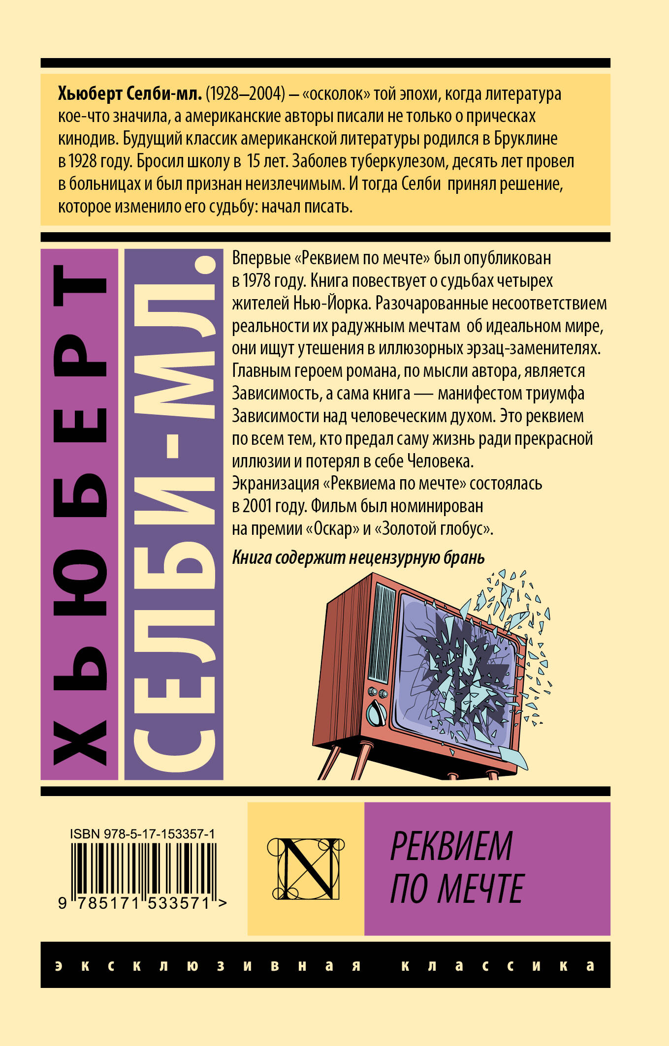 Впервые "Реквием по Мечте" был опубликован в 1978 году. Книга повествует о судьбах четырех жителей Нью-Йорка, которые, не в силах выдержать разницу между мечтами об идеальной жизни и реальным миром, ищут утешения в иллюзорных эрзац-заменителях. Главным героем романа, по мысли автора, является Зависимость, а сама книга - манифестом триумфа Зависимости над человеческим духом. Это реквием по всем тем, кто предал жизнь для радужной иллюзии и потерял в себе Человека. Экранизация "Реквиема по мечте" состоялась в 2001 году. Фильм был номинирован на премии "Оскар" и "Золотой глобус".| Издательство | ИЗДАТЕЛЬСТВО "АСТ" |