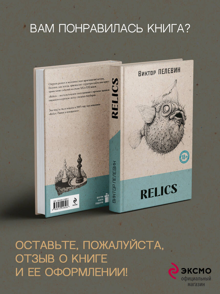 Сборник ранних произведений автора. Пелевин как всегда оригинален - не только в своем творчестве, но и в его преподнесении читателю: содержание книги повторяет хронологию событий, произошедших с Россией на стыке XX и XXI веков. Мы достаточно удалились от девяностых, чтобы разглядеть их без эффекта «лицом к лицу лица не увидать». Relics - ностальгическое воспоминание о времени малиновых пиджаков в суровую эпоху оранжевых галстуков. Книга составлена таким образом, чтобы ее содержание примерно соответствовало хронологии событий: как мы туда прибыли; для этого включены несколько совсем ранних рассказов; во что вляпались и куда после этого делись… Эти тексты были изданы в 2005 году под названием «Relics. Раннее и неизданное».| Издательство | ООО "Издательство "Эксмо" |