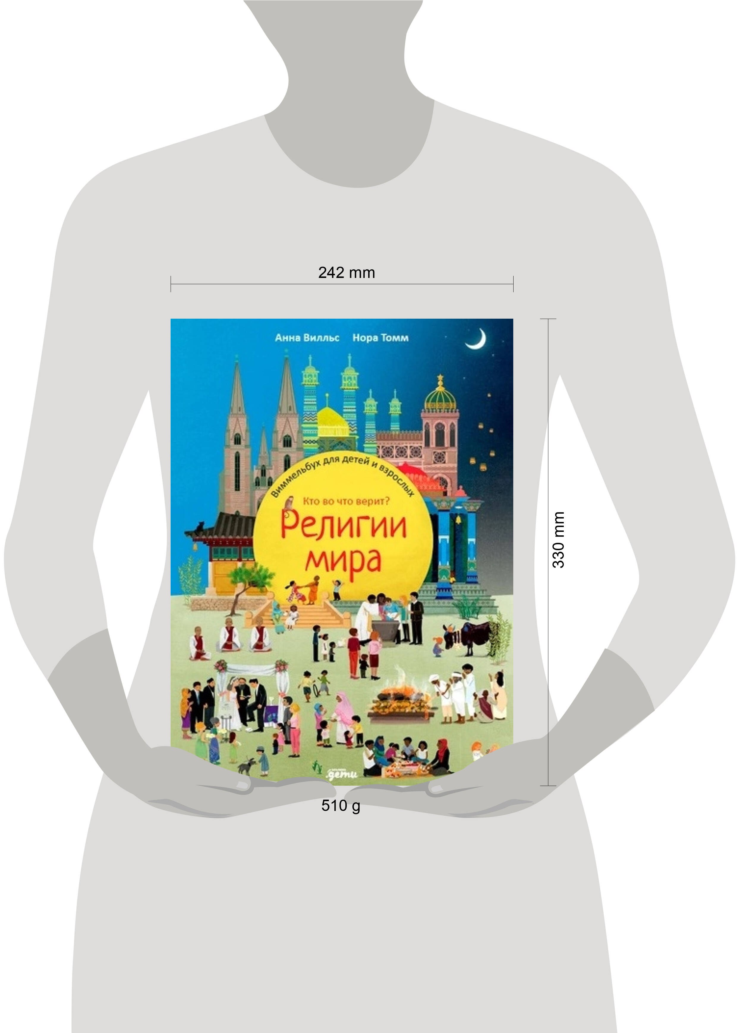 Настоящий путеводитель по пяти основным мировым религиям: она рассказывает о ритуалах, традициях, праздниках и символике индуизма, иудаизма, буддизма, христианства и ислама (религии представлены по численности последователей). Вы узнаете, что такое карма в индуизме, что символизирует цветок лотоса в буддизме, что празднуется в иудаизме в Песах, какое значение для христиан имеет святая вода и в какой стране живет больше всего мусульман. А сценки из повседневной жизни, представленные на красочных иллюстрациях-виммельбухах, погружают в атмосферу жизни разных народов настолько, что кажется, будто слышишь гул голосов или ощущаешь запахи на рынке! Мы живем в эпоху мультикультурализма, поэтому так важно помочь детям узнать получше традиции и взгляды разных людей: и тех, кого они видят каждый день, и тех, кто живет на другом конце земного шара. Ведь именно это знание ведет к принятию и терпимости.| Издательство | Альпина Паблишер ООО |