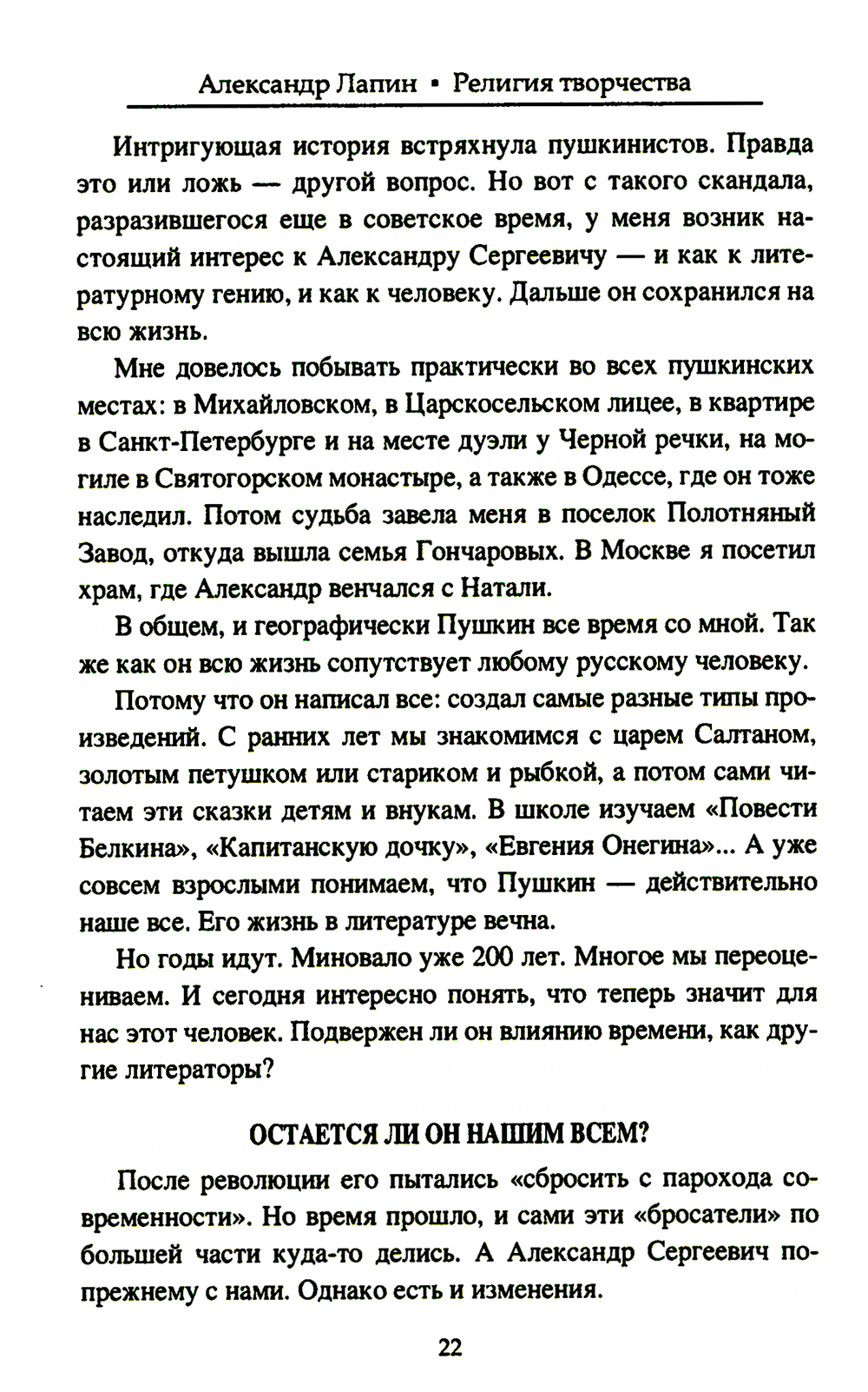 В этой книге известный писатель и журналист Александр Лапин рассматривает столь многообразный феномен в совершенно неожиданных ракурсах. Сделать удивительные выводы ему помогают как обобщение личного авторского опыта, так и анализ наследия классиков с точки зрения современности.