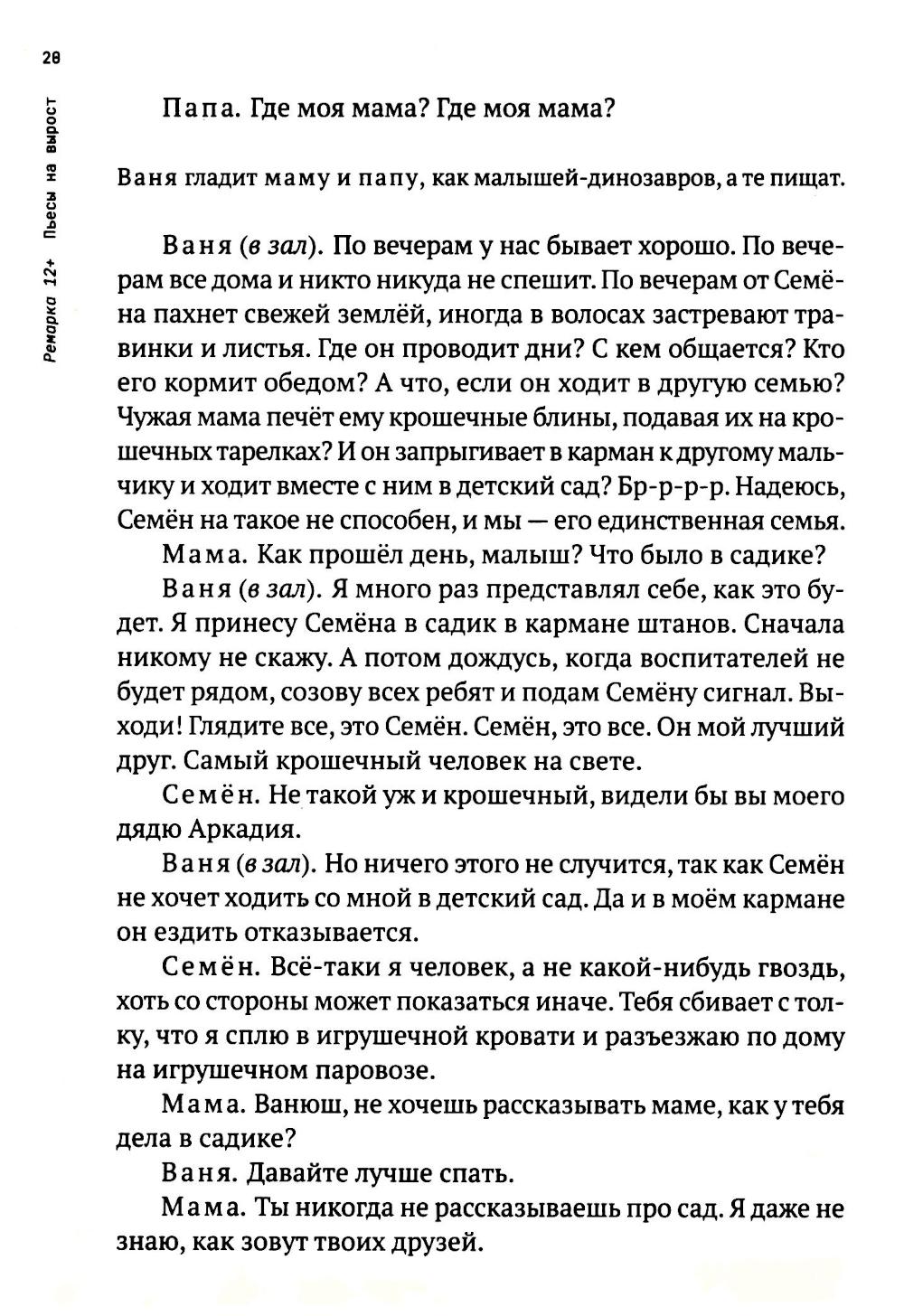 Аннотация: Ремарка 12+ : Пьесы на вырост