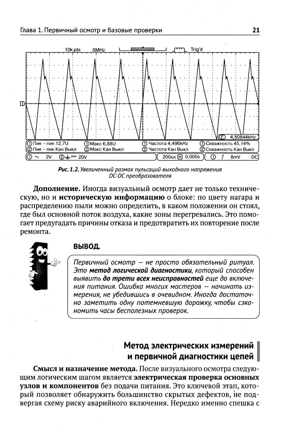 Добро пожаловать в мир практического ремонта источников питания! Эта книга - ваш надежный проводник в сложном, но увлекательном процессе восстановления работоспособности блоков питания различного типа. От простых линейных источников и адаптеров до компьютерных блоков ATX, импульсных модулей телевизоров и мощных инверторов - здесь собран опыт, который поможет каждому, кто сталкивается с неисправной техникой. Пошагово объясняются принципы работы основных узлов и приводятся типовые схемы. Читатель узнает, как диагностировать и устранять неисправности, правильно измерять параметры, выбирать замену компонентам и избегать типичных ошибок при ремонте. Особое внимание уделено методикам проверки источников питания «на столе», технике безопасности и практическим советам мастеров. В книге приведено множество иллюстраций, наглядных схем, практических примеров и пошаговых инструкций. Благодаря этому даже начинающий радиолюбитель сможет разобраться в тонкостях диагностики и ремонта. Важная особенность издания - более трехсот QR-кодов, ведущих на дополнительные материалы: обучающие видео, онлайн-калькуляторы, расширенные справочные таблицы и практические разборы схем. Отсканировав код, вы сможете сразу перейти от теории к практике и увидеть ремонт в действии. Книга написана доступным языком, но с сохранением технической точности. Она будет полезна начинающим радиолюбителям, студентам и мастерам сервисных центров, а также всем, кто хочет научиться ремонтировать блоки питания и экономить на покупке новой техники.| Издательство | Наука и техника |