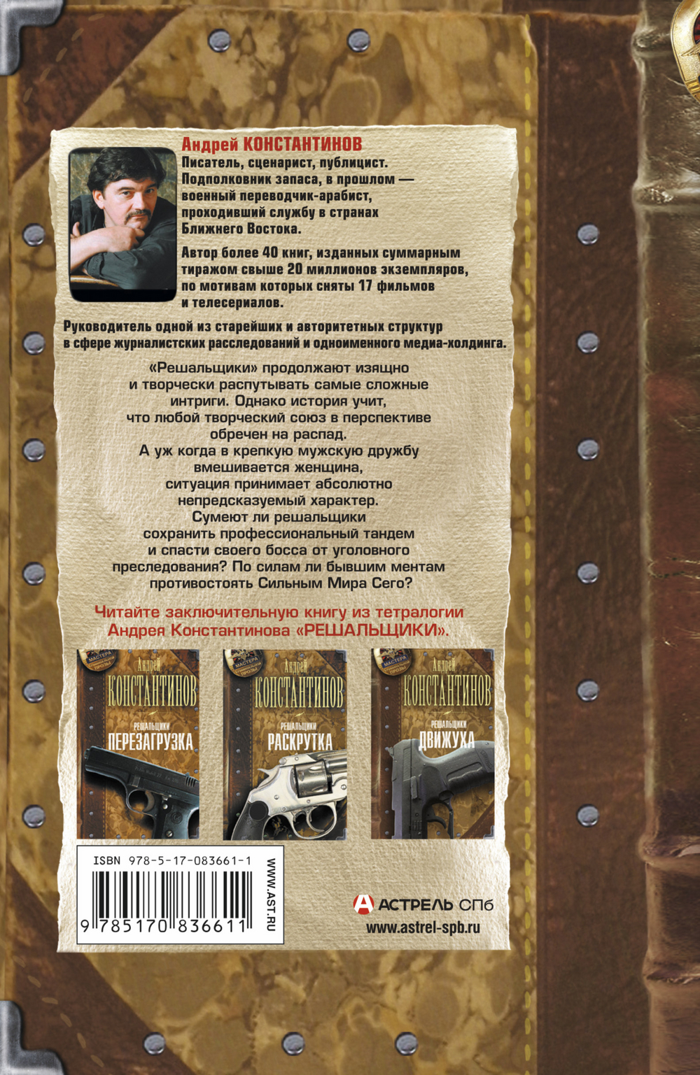 "Решальщики" продолжают изящно и творчески распутывать самые сложные интриги. Однако история учит, что любой творческий союз в перспективе обречен на распад. А уж когда в крепкую мужскую дружбу вмешивается женщина, ситуация принимает абсолютно непредсказуемый характер. Сумеют ли решальщики сохранить профессиональный тандем и спасти своего босса от уголовного преследования? По силам ли бывшим ментам противостоять Сильным Мира Сего? Читайте заключительную книгу из тетралогии Андрея Константинова "Решальщики".