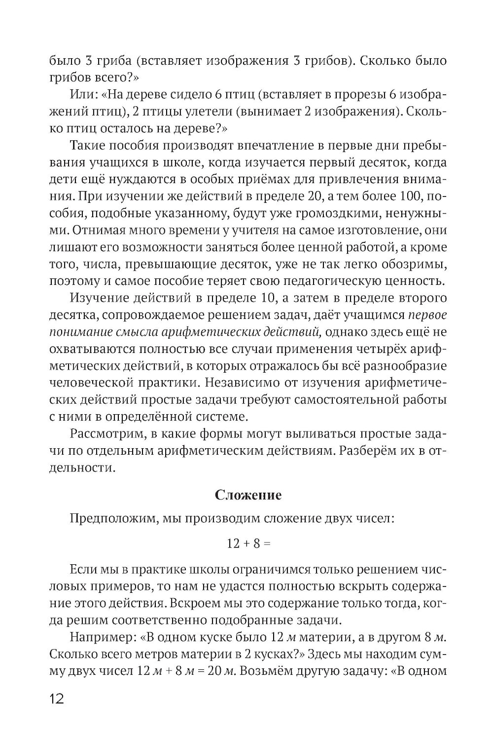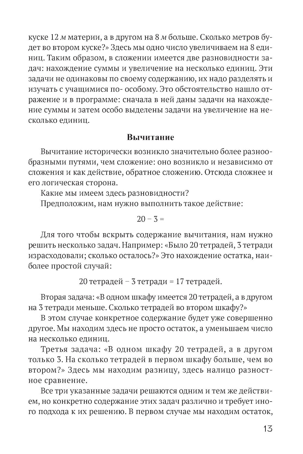 Арифметика не просто учит ребёнка счёту. Она развивает математические навыки: умение рассуждать, логически обосновывать свои доводы и выбирать правильный метод получения результата. Цель данного методического пособия - помочь учителю на конкретных примерах научить ребенка арифметическому мышлению, раскрыть жизненное, практическое содержание задачи и выявить тесную функциональную связь между исходными величинами. В результате учащийся сможет выстраивать логическую цепочку рассуждений о том, какие действия, над какими данными, в какой последовательности следует произвести, чтобы получить верный ответ. Особое внимание в пособии уделено часто встречающимся ошибкам школьников. Каждая тема сопровождается практическими советами опытных педагогов, уточняющими комментариями и наглядными иллюстрациями. Издание будет полезно преподавателям начальных классов и родителям в качестве основного или дополнительного источника материала по школьной программе для начальных классов.| Издательство | Советские учебники |