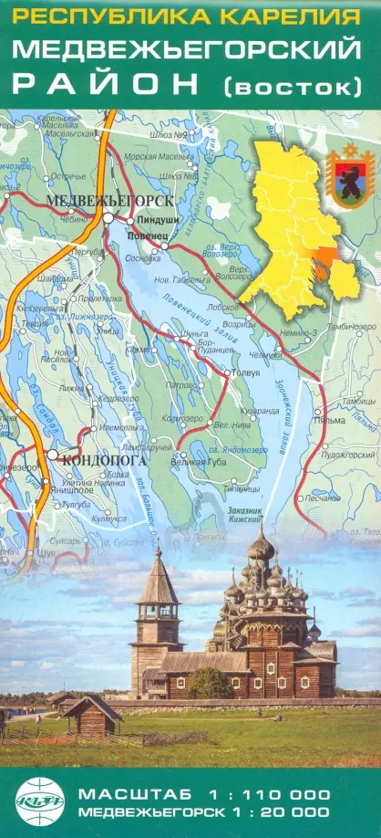 Республика Карелия. Медвежьегорский район (восток). Карта складная. Масштаб: Республика КАрелия 1: 110 000; Медвежьегорск 1: 20 000