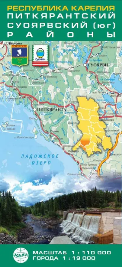 Показаны все населённые пункты, элементы природы и рельефа, объекты инфраструктуры и дорожного сервиса, автомобильные дороги и их технологическое состояние; отмечены отделы ГИБДД, указаны расстояния между населёнными пунктами и отдельными участками автодорог. Дополнительно: планы Питкяранты и Суоярви, указатель населённых пунктов, железнодорожных станций и озёр. Карта будет интересна путешественникам и широкому кругу пользователей. Формат: 115х250 мм. Формат разворота: 1000х690 мм. Масштаб: 1:110 000 (район), 1:19 000 (города)