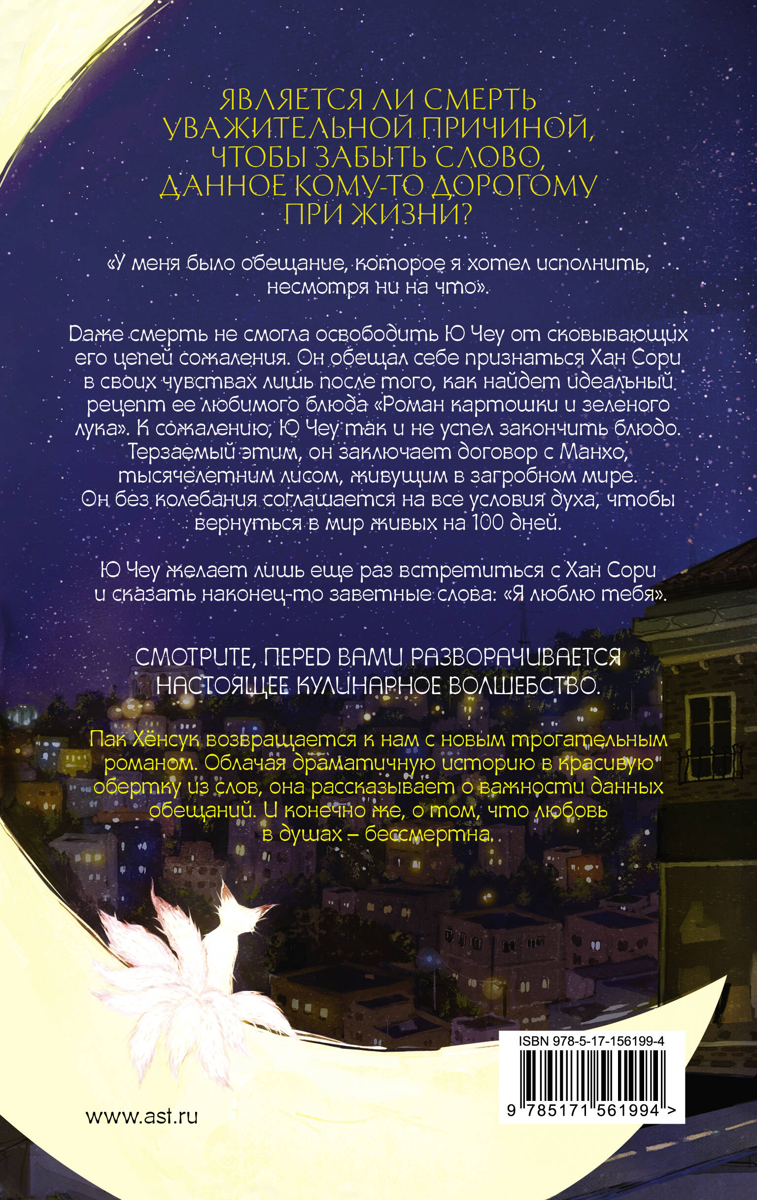 - Продолжение южнокорейского бестселлера, который разошелся тиражом более 1 000 000 копий. - Душевная история о втором шансе и попытках наверстать упущенное после смерти. - Пак Хёнсук - победитель Ежегодного Весеннего Конкурса Литераторов газеты «Тэчжон Ильбо» 2006 года и обладатель премии Комитета Корейской культуры и искусства. - Для поклонников мистики и историй про духов и перерождения с азиатским колоритом. - Понравится тем, кому пришлись по душе романы «Магазин снов мистера Талергута», «Настоящий я» и «Зловещий ресторан».| Издательство | Издательство "АСТ" |