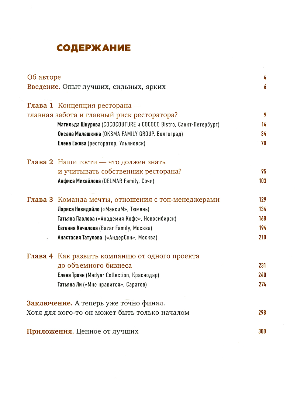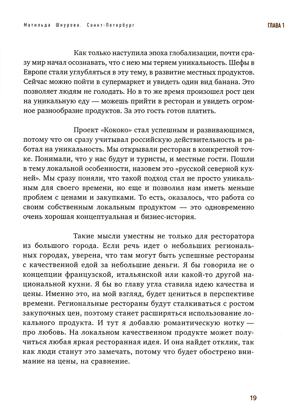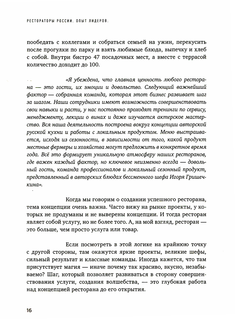 Нет ничего ценнее, чем опыт тех, кто идет впереди, многого достиг, осмыслил и готов делиться. В этой книге лучшие рестораторы страны: Анастасия Татулова, г. Москва, сеть семейных кафе «АндерСон», Матильда Шнурова, г. Санкт-Петербург, проекты Coco Bistro, CocoCuture, Елена Троян, г. Краснодар, ресторанная компания Madyar Collection, Лариса Невидайло, г. Тюмень, ресторанная компания «МаксиМ», Татьяна Ли, г. Саратов, ресторанная компания «Мне нравится», Татьяна Павлова, г. Новосибирск, сеть кофеен «Академия кофе», Оксана Малашкина, г. Волгоград, холдинг OKSMA FAMILY GROUI, Анфиса Михайлова, г. Сочи, ресторанная компания Delmar Family, Евгения Качалова, г. Москва, ресторанная группа Bazar Family, Елена Ежова, г. Ульяновск, высказались на самые актуальные и важные темы: • Концепция ресторана - главная забота и главный риск ресторатора? • Наши гости - что должен знать и учитывать собственник ресторана? • Команды мечты, отношения с топ-менеджерами. • Как развивать компанию от одного проекта до объемного бизнеса? Виолетта Гвоздовская, компания Welcomepro, смогла собрать все идеи предпринимателей в практический учебник, где в каждой главе вы увидите список решений, методик и лайфхаков каждого сильного, яркого и успешного ресторатора.| Издательство | Ресторанные ведомости |