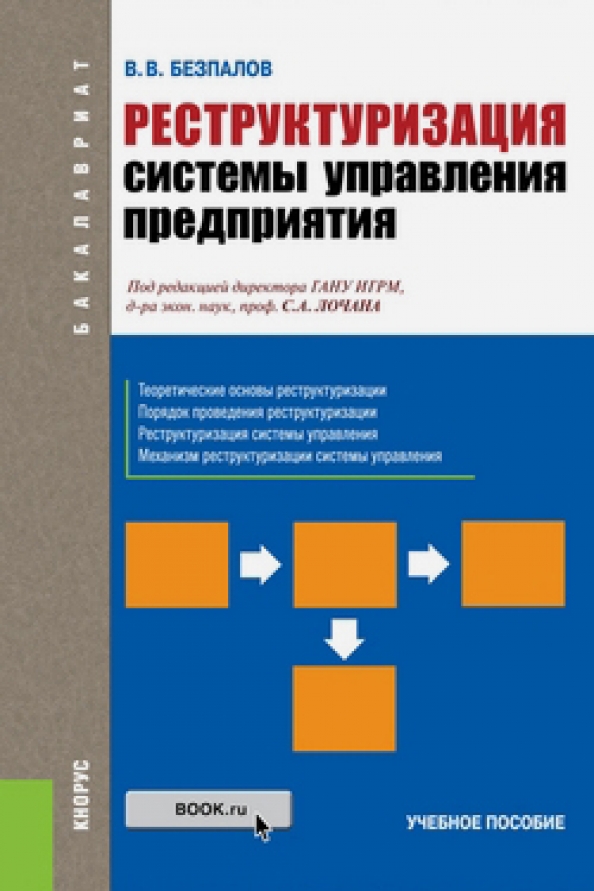 Рассмотрены современные теоретические основы реструктуризации, изложены и представлены теоретические, методологические и практические аспекты реструктуризации системы управления. Освещены понятия реструктуризации, направления, стратегии, подходы, методы и порядок проведения реструктуризации. Детально проанализирована и изложена реструктуризация системы управления. Рассмотрены подходы к построению механизма реструктуризации системы управления. Рассматривая реструктуризацию системы управления предприятием, как основным элементом экономики государства, можно отметить, что объектом реструктуризации системы управления при использовании изложенного в учебном пособии материала, может выступать не только государственная или коммерческая компания, предприятие или организация, но и система управления регионом, муниципалитетом, а так же местное самоуправление. Соответствует действующему Федеральному государственному образовательному стандарту высшего образования нового поколения. Для студентов бакалавриата, специалитета и магистратуры, обучающихся по направлениям "Экономика", "Менеджмент", "Государственное и муниципальное управление", а так же широкого круга специалистов занятых в области исследования систем управления.