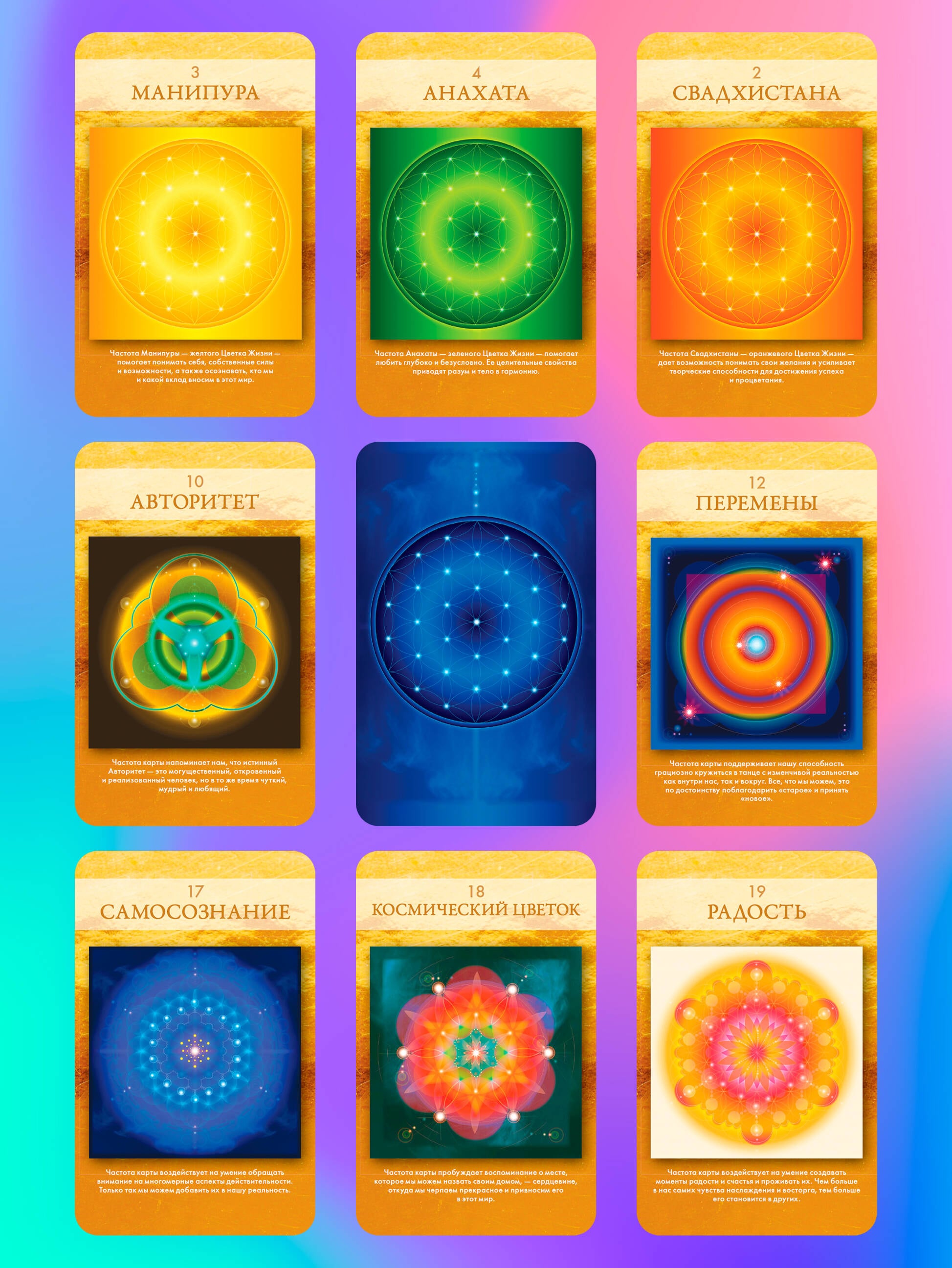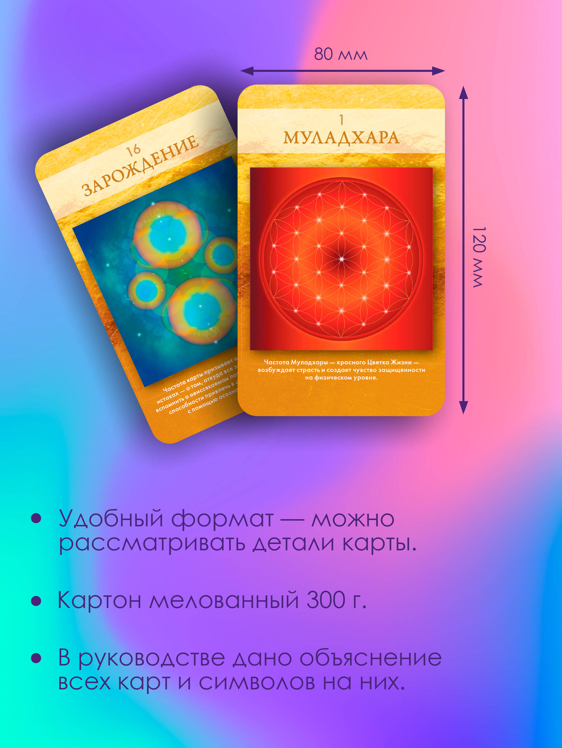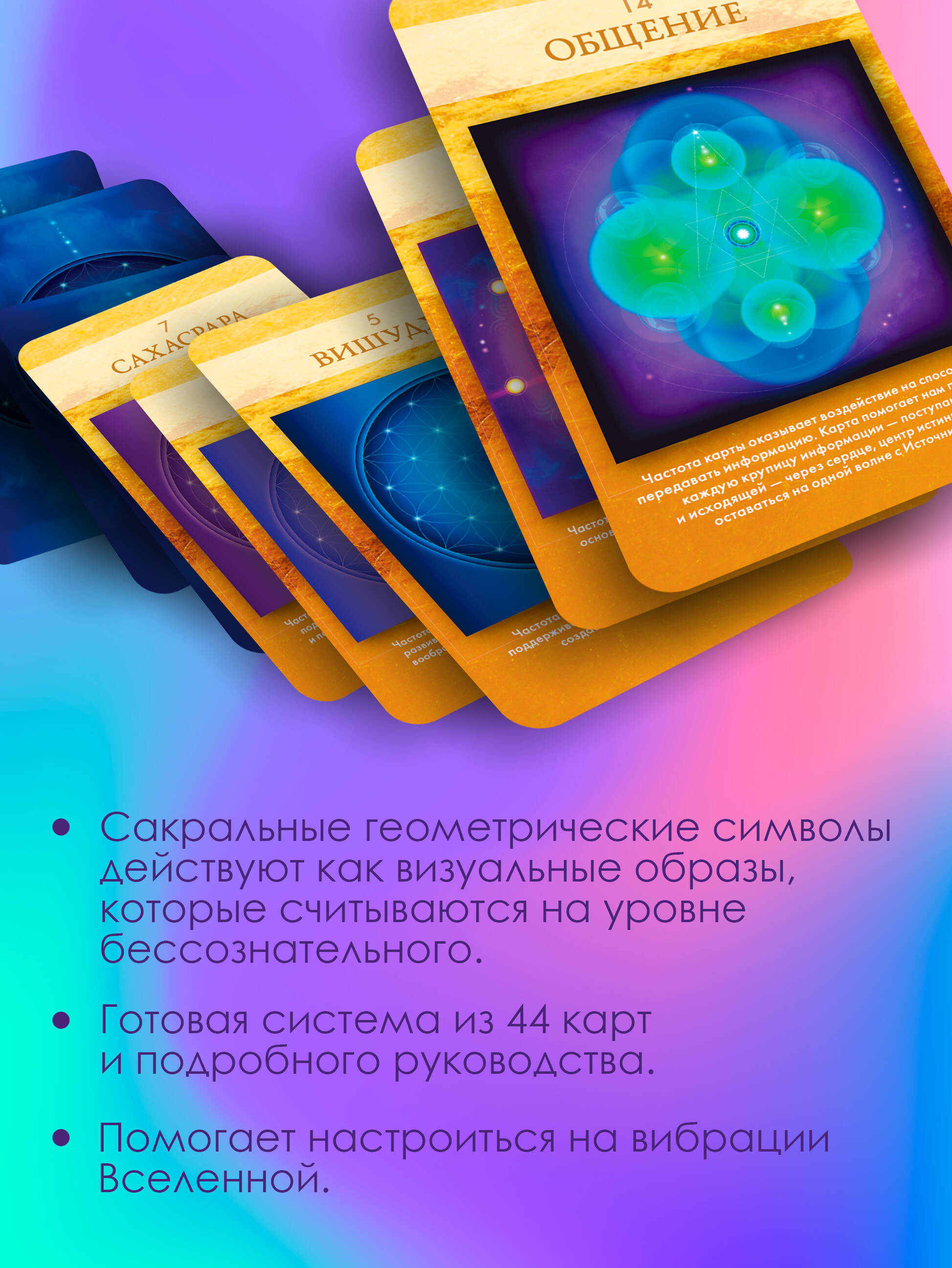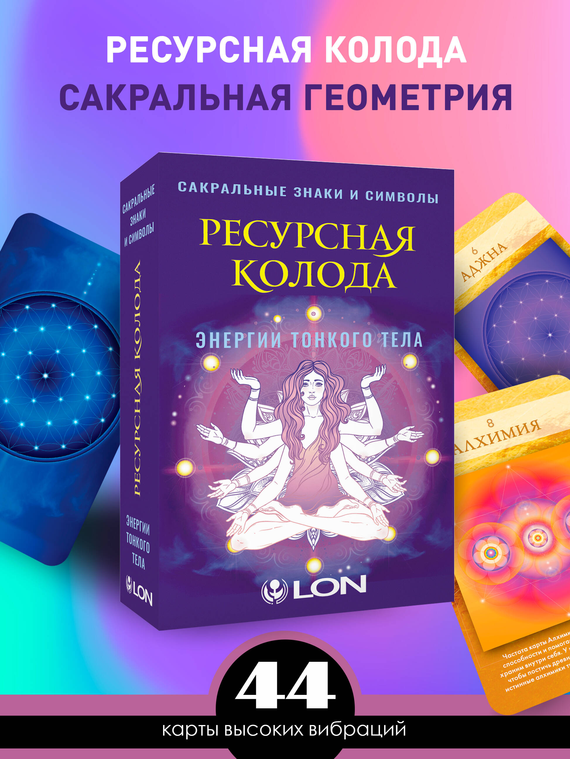 Представьте, что человек - это магнит, который притягивает все, что ему подобно: счастливый человек притягивает счастье, общительный человек притягивает новых людей и т. д. Но что делать, если в определенный период притягиваются только неудачи и проблемы? Помимо активных действий в физическом мире (это в первую очередь!), можно работать еще и с миром энергий - повышать частоту своих вибраций. Формула простая: чем выше вибрации, тем больше положительного вы притягиваете в свою жизнь. В этом поможет колода "Сакральной геометрии". Геометрические фигуры, изображенные на картах, и то, как именно они расположены, работают как визуальные инструменты, помогающие активировать тонкие энергии вокруг и внутри вас. Так происходит настройка на нужные вибрации более высокой частоты. В колоде есть карты Любви, Божественной Женщины, Коммуникации - все эти вибрации закодированы в них. Колода основана на сакральной геометрии, которая представляет собой универсальный язык, связывающий все аспекты жизни. Сакральная геометрия демонстрирует, как одни и те же законы проявляются в природе, искусстве и даже в космосе, подчеркивая единство всего сущего. Работа с картами Активации позволит вам исследовать три ключевых столпа реальности: тело, сердце и сознание. Эти элементы формируют наше восприятие мира через физические ощущения, эмоциональные переживания и ментальные процессы. Погружаясь в процесс работы с картами, вы сможете не только расширить свои горизонты, но и наладить связь с внутренним "Я", что приведет к более глубокому пониманию своей жизни и места в мире. Лон - известная художница, исследователь сакральной геометрии, автор и создательница оракулов, которые получили высокую оценку во всем мире.| Издательство | Издательство "АСТ" |