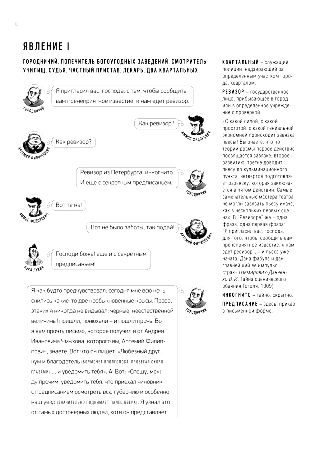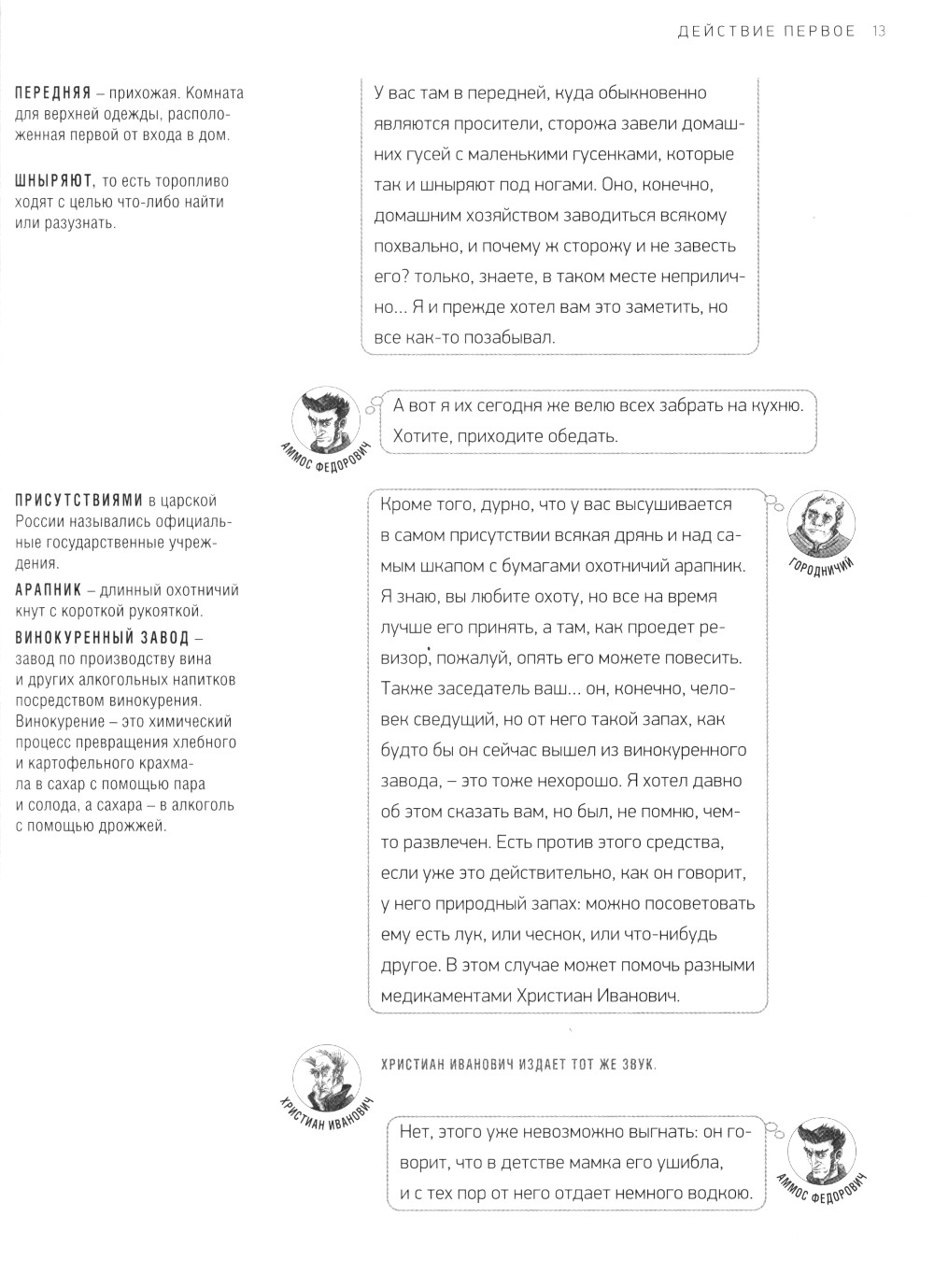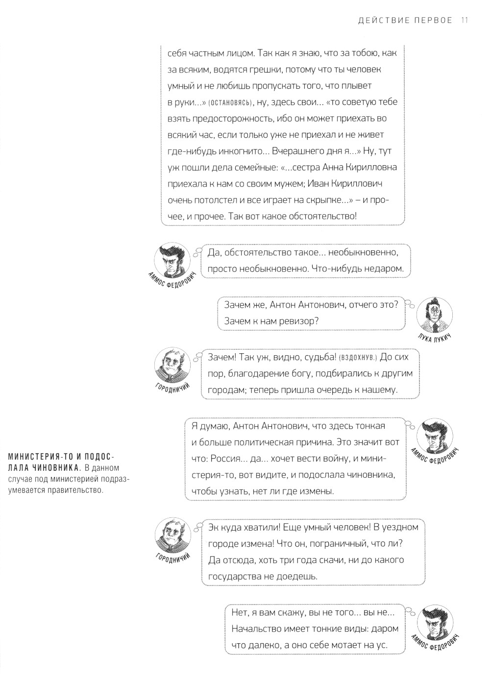 В издании приводится текст бессмертной комедии Н. В. Гоголя «Ревизор» с постраничными комментариями Владислава Суркова и замечательными иллюстрациями Марии Филипповой. Книга подготовлена с использованием современных издательских технологий, позволяющих читать пьесу «в лицах» и получать справочную информацию, не отвлекаясь от содержания великого произведения. Для читателей всех возрастов и политических убеждений.| Издательство | Проспект |