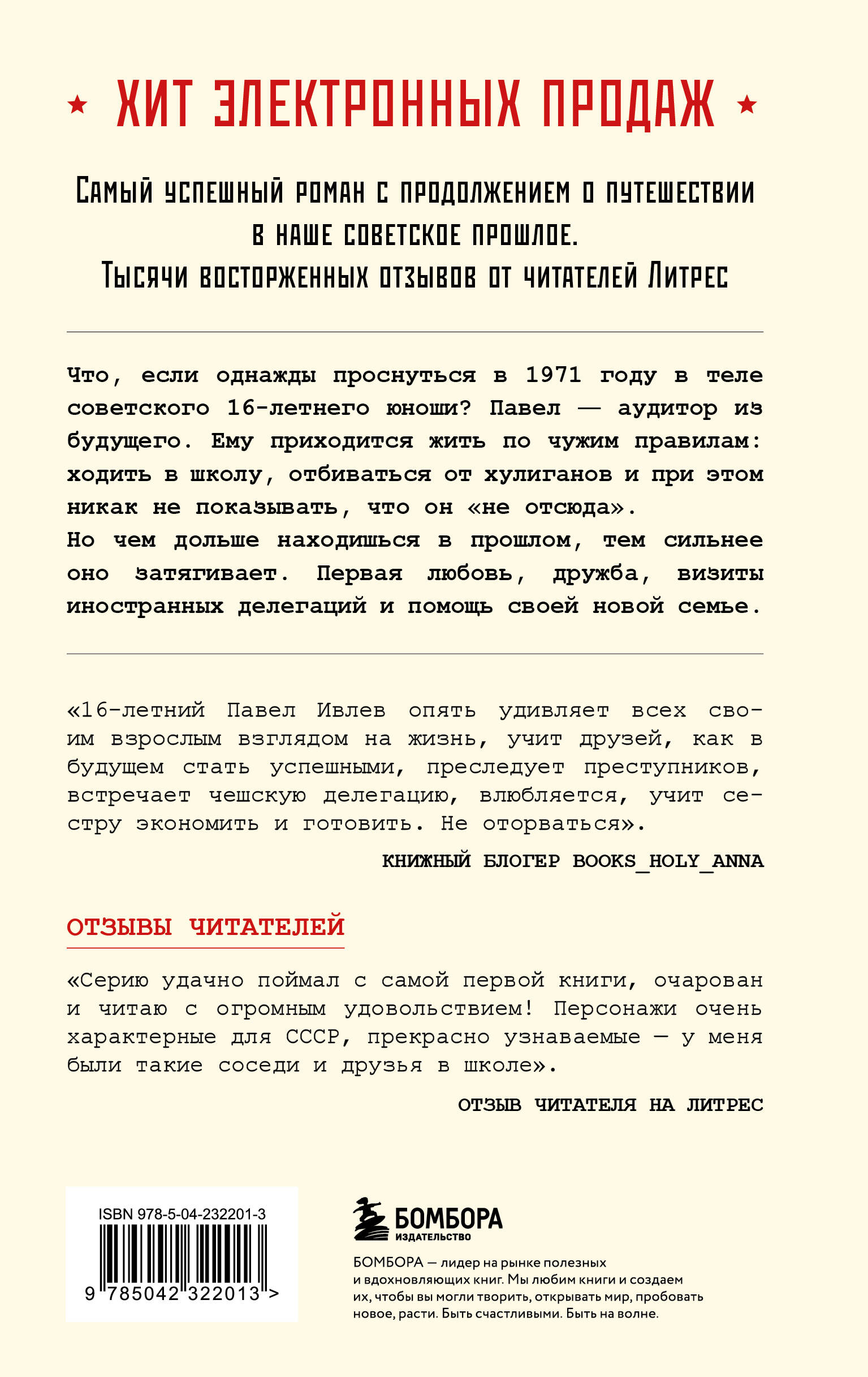 Приключенческий роман с элементами детектива и ретро-ностальгии. Реалистичная атмосфера СССР начала 70-х. Динамичный сюжет: расследование, экшен, юмор. Живой язык и достоверные бытовые детали. Четвертая часть цикла о путешествии во времени, в самое сердце нашего советского прошлого. Тысячи восторженных отзывов от читателей Литрес! Внутри вас ждет вкладыш с коллекционными ретро-марками в подарок. Соберите всю коллекцию! Что, если однажды проснуться не в XXI веке, а в 1971 году, в теле советского 16-летнего юноши, где каждая ошибка может стоить слишком дорого? Павел - человек из будущего, оказавшийся в эпохе, где ему приходится учиться жить по чужим правилам: ходить в школу, отбиваться от хулиганов и при этом не выдать, что он «не отсюда». Но чем дальше находишься в прошлом, тем сильнее оно затягивает. Первая любовь, дружба, визиты иностранных делегаций и помощь своей новой семье. Книга о детстве, привычках и жизни в Советском Союзе. Идеально для подарка родителям, бабушке или дедушке. Для читателей: «Мой СССР», «Вкус детства», «Советские дети», «Письма из прошлого» и авторов: Наталья Ключарева, Олег Попцов, Людмила Улицкая, Александр Минкин. «16-летний Павел Ивлев опять удивляет всех своим взрослым взглядом на жизнь, учит друзей, как в будущем стать успешными, ищет преступников, встречает чешскую делегацию, влюбляется, учит сестру экономить и готовить. Не оторваться». - books_holy_anna «Серию удачно поймал с самой первой книги, очарован и читаю с огромным удовольствием! Персонажи очень характерные для СССР, прекрасно узнаваемые - у меня были такие соседи и друзья в школе». - Отзыв читателя с Литрес| Издательство | ООО "Издательство "Эксмо" |