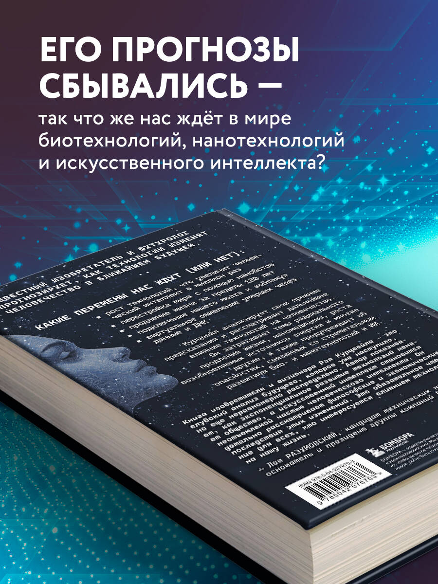 Известный изобретатель и футуролог прогнозирует то, как технологии изменят человечество в ближайшем будущем. Какие перемены нас ждут (или нет): • рост технологий, что увеличит человеческий интеллект в миллион раз; • перестройка мира с помощью наноботов; • продление жизни за пределы 120 лет; • подключение наших мозгов к «облаку»; • виртуальное оживление умерших через данные и ДНК. Курцвейл анализирует свои прежние предсказания и рассматривает дальнейшее влияние технологий на человечество. Он затрагивает темы радикального продления жизни, наномедицины, роста возобновляемых источников энергии и многие другие, а также предупреждает об опасностях, связанных со стремительным развитием биотехнологий, нанотехнологий и ИИ. «Книга изобретателя и визионера Рэя Курцвейла - это глубокий анализ будущего, которое уже наступило, но еще неравномерно распределено. Автор показывает, как экспоненциальное развитие технологий меняет общество, а искусственный интеллект становится неотъемлемой частью человеческого интеллекта. Он детально рассматривает философские и экономические последствия этих изменений. Это обязательное чтение для всех, кто интересуется влиянием технологий на нашу жизнь». - Лев РАЗУМОВСКИЙ, кандидат технических наук, основатель и президент группы компаний Ramax| Издательство | ООО "Издательство "Эксмо" |