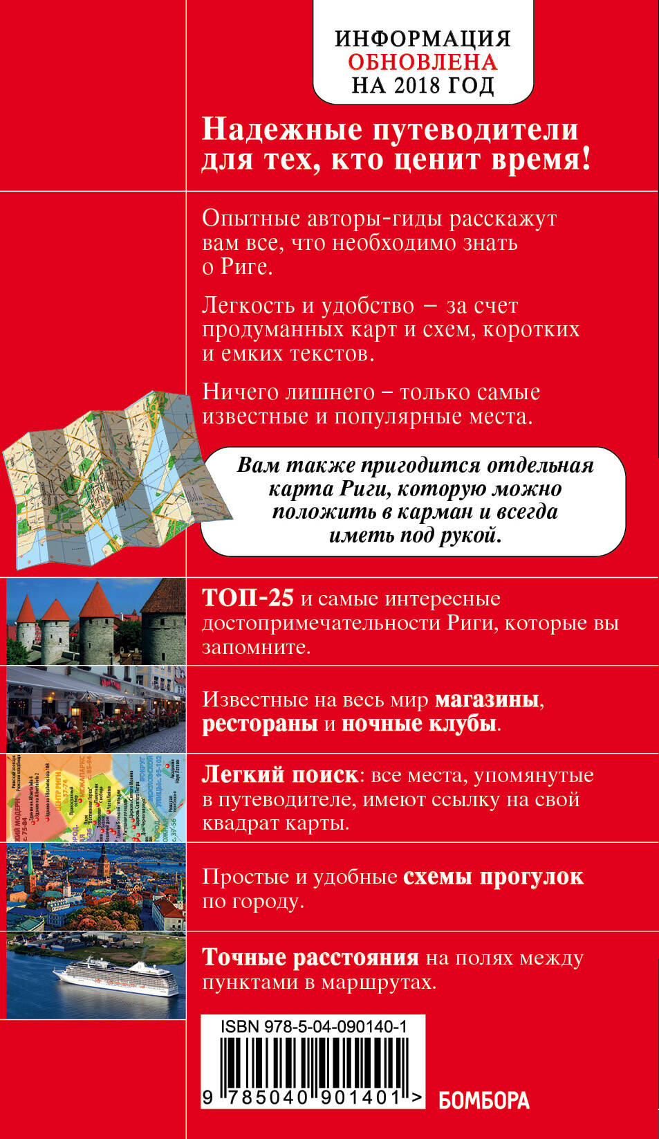 Перед вами экспресс-гид по Риге. В нем содержится краткая информация о городе, советы, как лучше провести первый и второй дни, и 25 главных достопримечательностей. Яркие фотографии, интересные факты и много полезной информации. Легкий, компактный, очень удобно брать с собой. Карта города, подробные карты для прогулок и карта транспорта прилагаются!| Издательство | ООО "Издательство "Эксмо" |