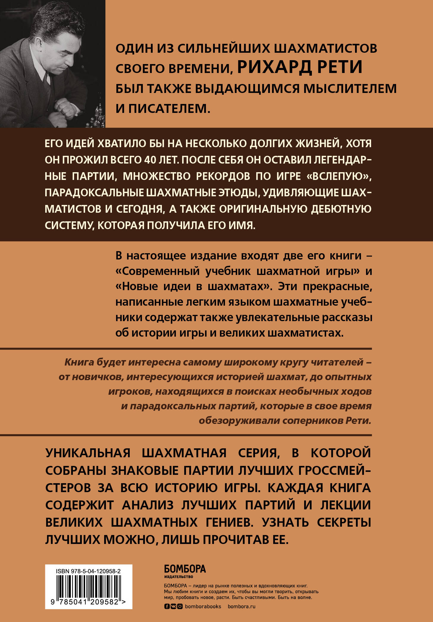 Один из сильнейших шахматистов своего времени, Рихард Рети был также выдающимся мыслителем и писателем. Его идей хватило бы на несколько долгих жизней, хотя он прожил всего 40 лет. После себя он оставил легендарные партии, множество рекордов по игре "в слепую", парадоксальные шахматные этюды, удивляющие шахматистов и сегодня, а также оригинальную дебютную систему, которая получила его имя. В настоящее издание входят две его книги - "Современный учебник шахматной игры" и "Новые идеи в шахматах". Эти прекрасные, написанные легким языком шахматные учебники содержат также увлекательные рассказы об истории игры и великих шахматистах. Книга будет интересна самому широкому кругу читателей - от новичков, интересующихся историей шахмат, до опытных игроков, находящихся в поисках необычных ходов и парадоксальных партий, которые в свое время обезоруживали соперников Рети.| Издательство | ООО "Издательство "Эксмо" |