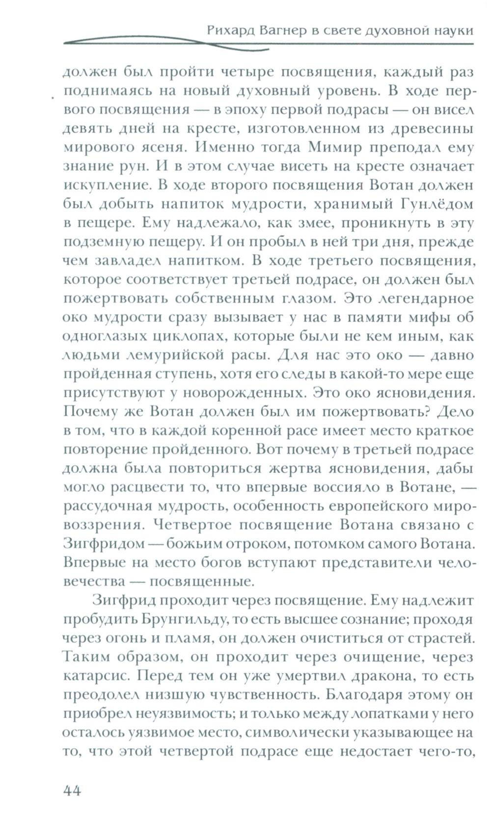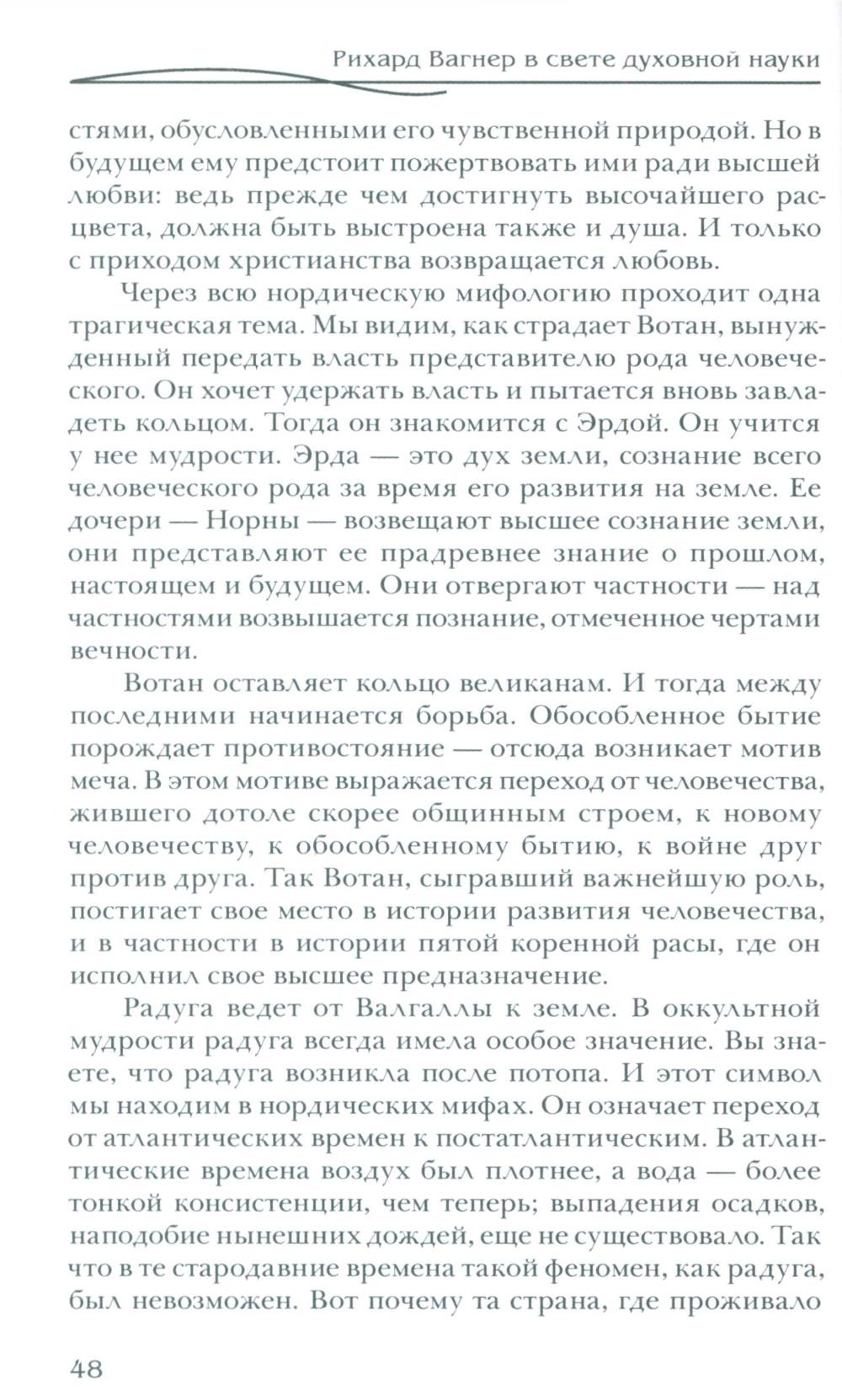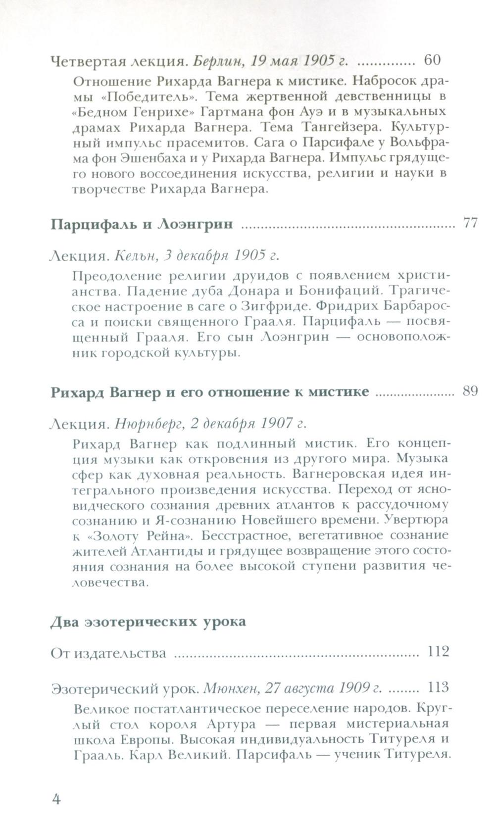 В современной культуре Рихарда Вагнера считают родоначальником новых поисков Грааля. В своих произведениях он стремился вернуть утраченную духовность, добиться синтеза знания, религии и искусства. В лекциях и эзотерических уроках Рудольф Штайнер, опираясь на рациональную мистику, исследует духовное содержание произведений Вагнера и раскрывает оккультное значение германо-скандинавских мифов. Он касается развития «Я» человека, разделения полов и его преодоления, тайн великих индивидуальностей - героев музыкальных драм Вагнера, музыки как откровения высшего мира, мудрости Грааля.| Издательство | Энигма |