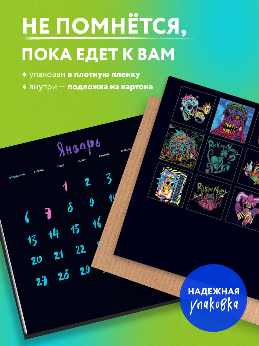 О серии: Наши настенные календари отличаются высоким качеством исполнения! Тщательно подобранные иллюстрации, напечатанные на глянцевой бумаге высочайшего качества, станут настоящим украшением дома, а в календарной сетке найдется место для ваших планов: большие клетки позволят делать записи и организовать свой год! В календаре также отмечены все государственные праздники. В серии настенных календарей издательства «ЭКСМО» каждый найдет тему по вкусу: великие художники, великолепные подборки с самыми знаменитыми произведениями искусства, легендарные кинематографические саги и игры, главные книжные авторы и бестселлеры, фотографии и иллюстрации любимых животных и многое-многое другое! О календаре: МЕГАФРАНШИЗА! Мультсериал с огромной фанатской аудиторией! Наконец-то в России! Проведи весь год с Риком и Морти! Удобный настенный календарь станет отличным приобретением себе и суперподарком близким! Внутри тебя ждут уникальные сочные иллюстрации, доступные только по лицензии, крутая сетка с основными праздниками и местом для записи важных событий. А удобный формат позволит повесить его абсолютно везде. Подари себе кусочек хорошего настроения на весь год! Для кого: Высокое качество полиграфического исполнения прекрасно дополняет иллюстрации из популярного мультфильма, что непременно будет по достоинству оценено людьми с хорошим вкусом. Технические параметры: - Тип календаря - настенный перекидной. - Год - 2025. - Календарная сетка - с разбивкой по месяцам. - Вид скрепления - скрепка. - Ширина - 17 см. - Высота - 17 см. - Внутренний блок - мелованная бумага 130 г/м2. - Подложка - плотный гофрокартон для поддержания формы. Индивидуальная упаковка в плотный целлофановый пакет.| Издательство | ООО "Издательство "Эксмо" |