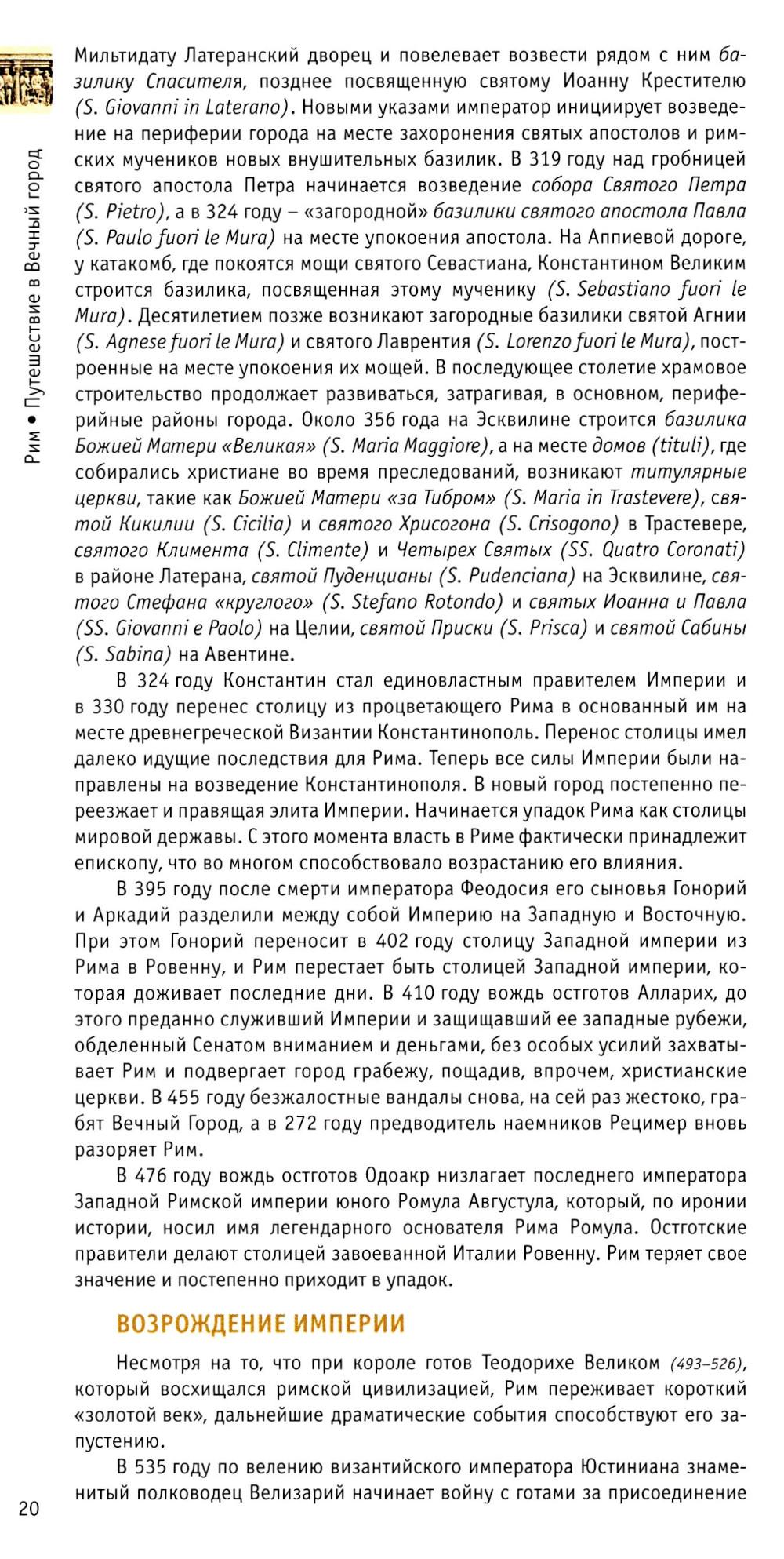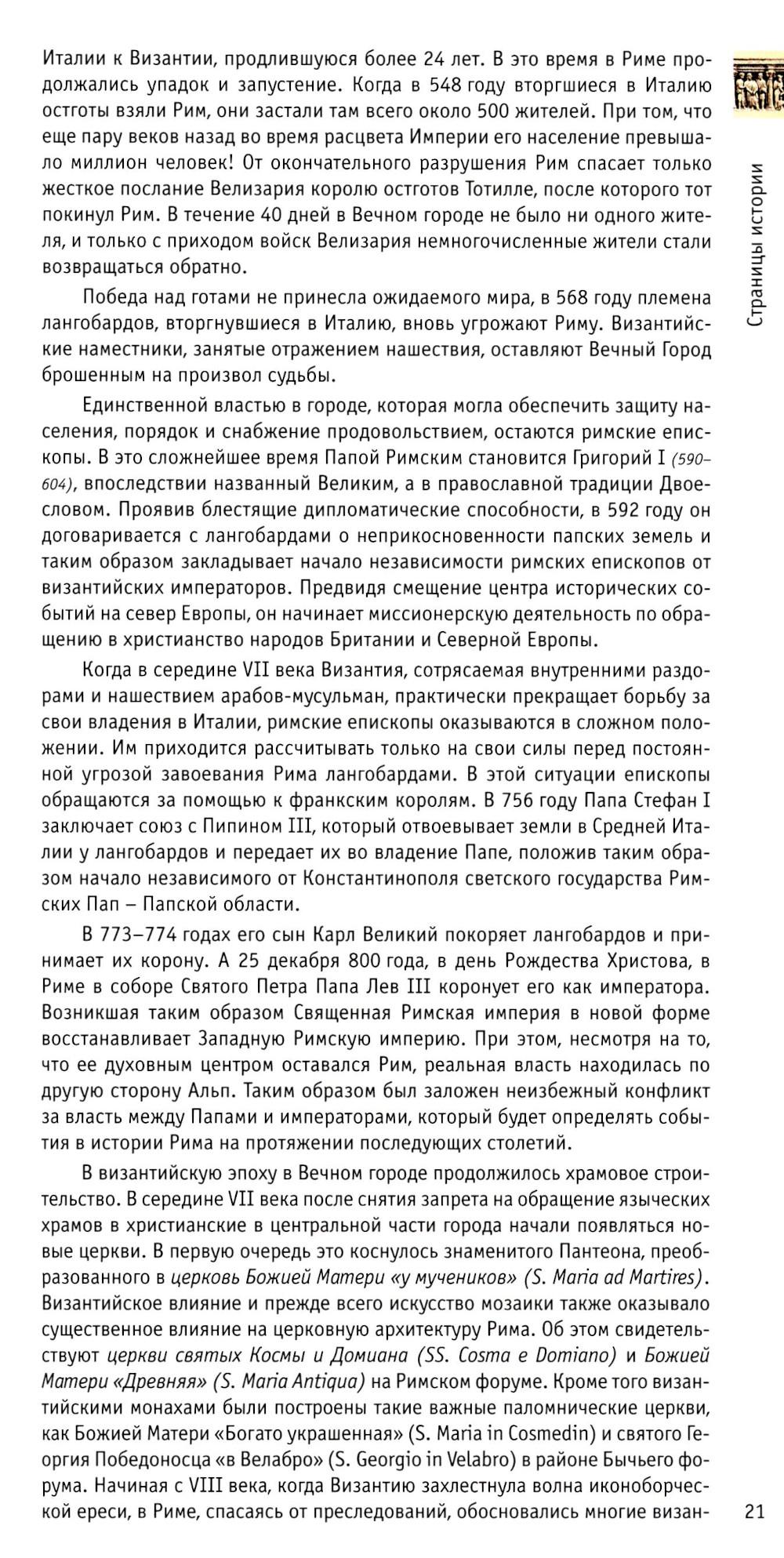 Книга дает подробное описание 116 церквей Вечного Города, в которых сохраняются святыни неразделенной Церкви и жития святых, мощи которых в них покоятся. В книге также описаны основные исторические и культурные достопримечательности Рима. Отдельная ее часть посвящена городу-государству Ватикан. В приложениях даны рекомендуемые паломнические и туристические маршруты и подробная справочная информация.| Издательство | НП-Принт |