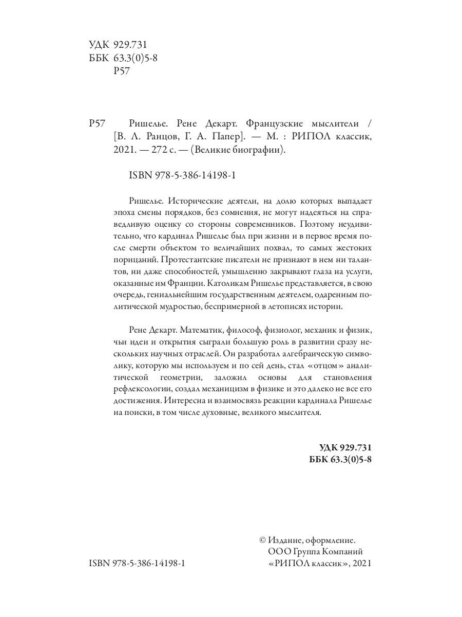Аннотация: Ришелье. Рене Декарт. Французские мыслители