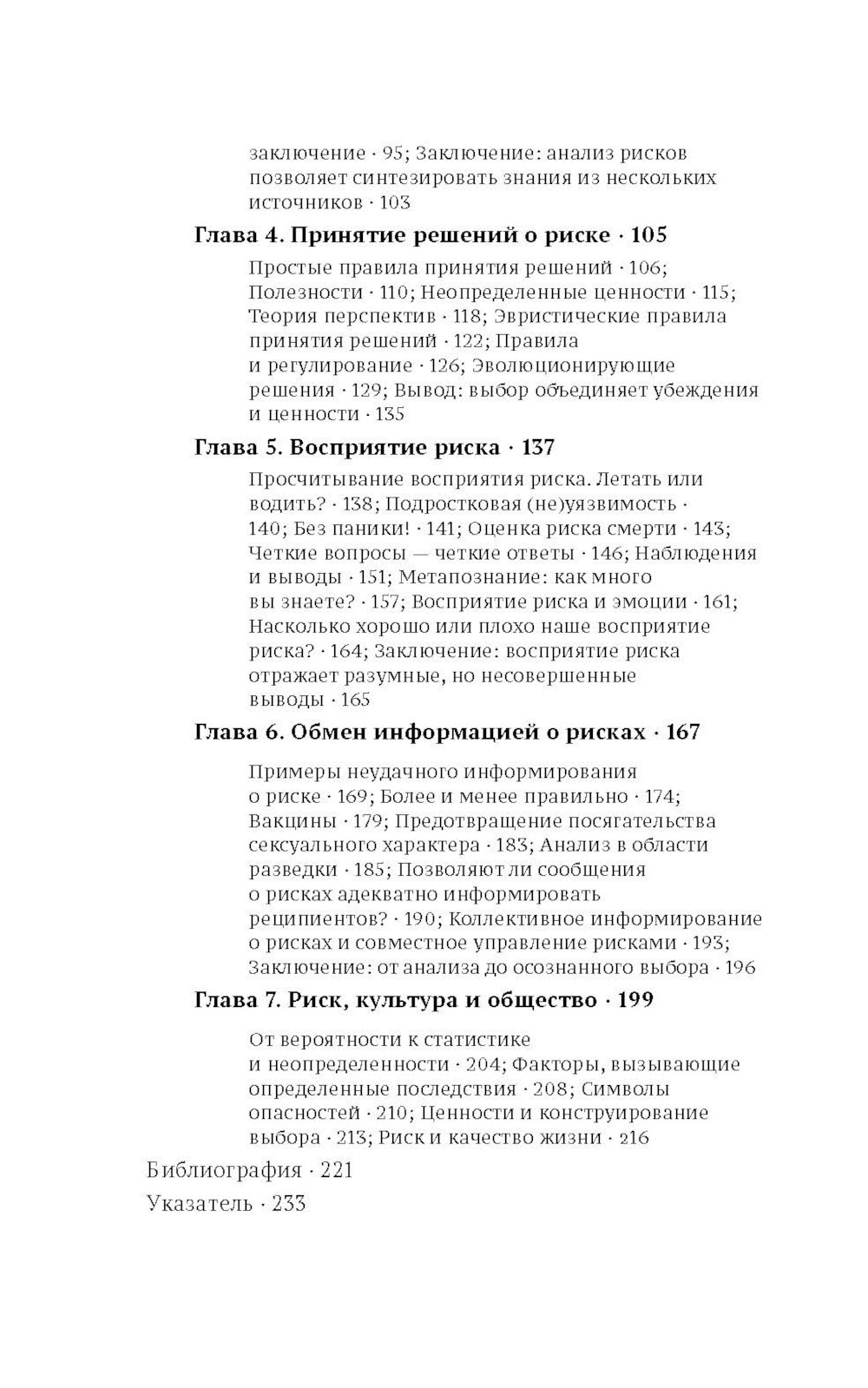 Риски повсюду. У них много источников, включая преступность, болезни, несчастные случаи, террор, изменение климата, финансы и сферу интимных отношений. Риски возникают в результате наших собственных действий или навязываются нам. В этом «Очень кратком введении» Фишхофф и Кадвани, опираясь как на естественно-научные, так и на гуманитарные соображения показывают, что объединяет все риски. Волнует ли нас потеря денег, здоровья, репутации или душевного спокойствия? Насколько мы заботимся о том, что происходит сейчас, или о том, что произойдет в будущем? Мы проявляем беспокойство о себе или о других? Прежде чем принять решение о рисках, нам требуется тщательно обдумать, что для нас важно, привлекая прошлый опыт, научные знания и учитывая неопределен-ности, связанные с будущим. Книга предназначена для всех, кто сталкивается с риском, и особенно для экономистов, психологов, инженеров, математиков, юристов, философов и политиков.| Издательство | Издательский дом "Дело" РАНХиГС |